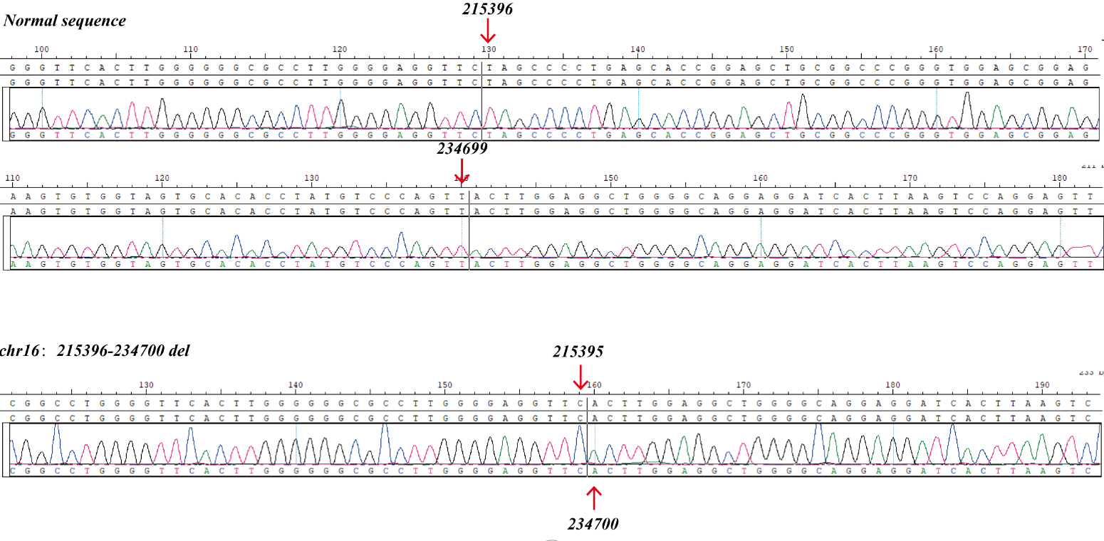 Chr position(GRCh37) chr16:215396-234699 del