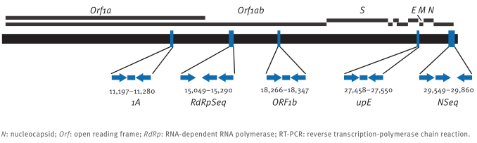 ORF1ab/RdRP(2798bp)、Gene N(1242bp)、uPE/E(996bp)