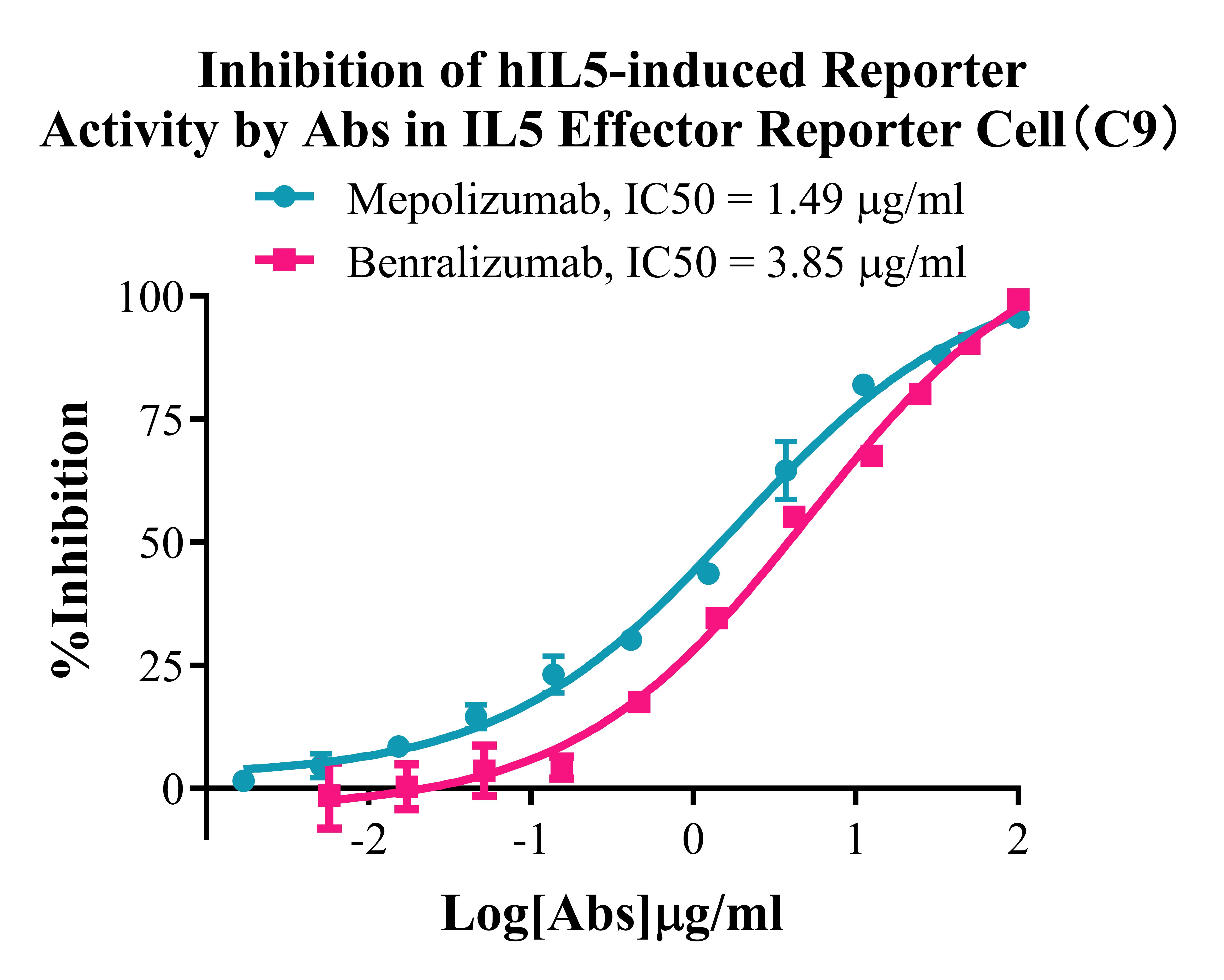 Figure 4. Inhibition of hIL5-induced Reporter Activity by Abs in IL5 Effector Reporter Cell (C9).