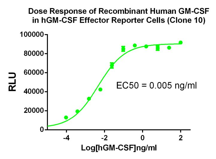 Figure 1. Dose Response of Recombinant Human GM-CSF in hGM-CSF Effector Reporter Cells (Clone 10).