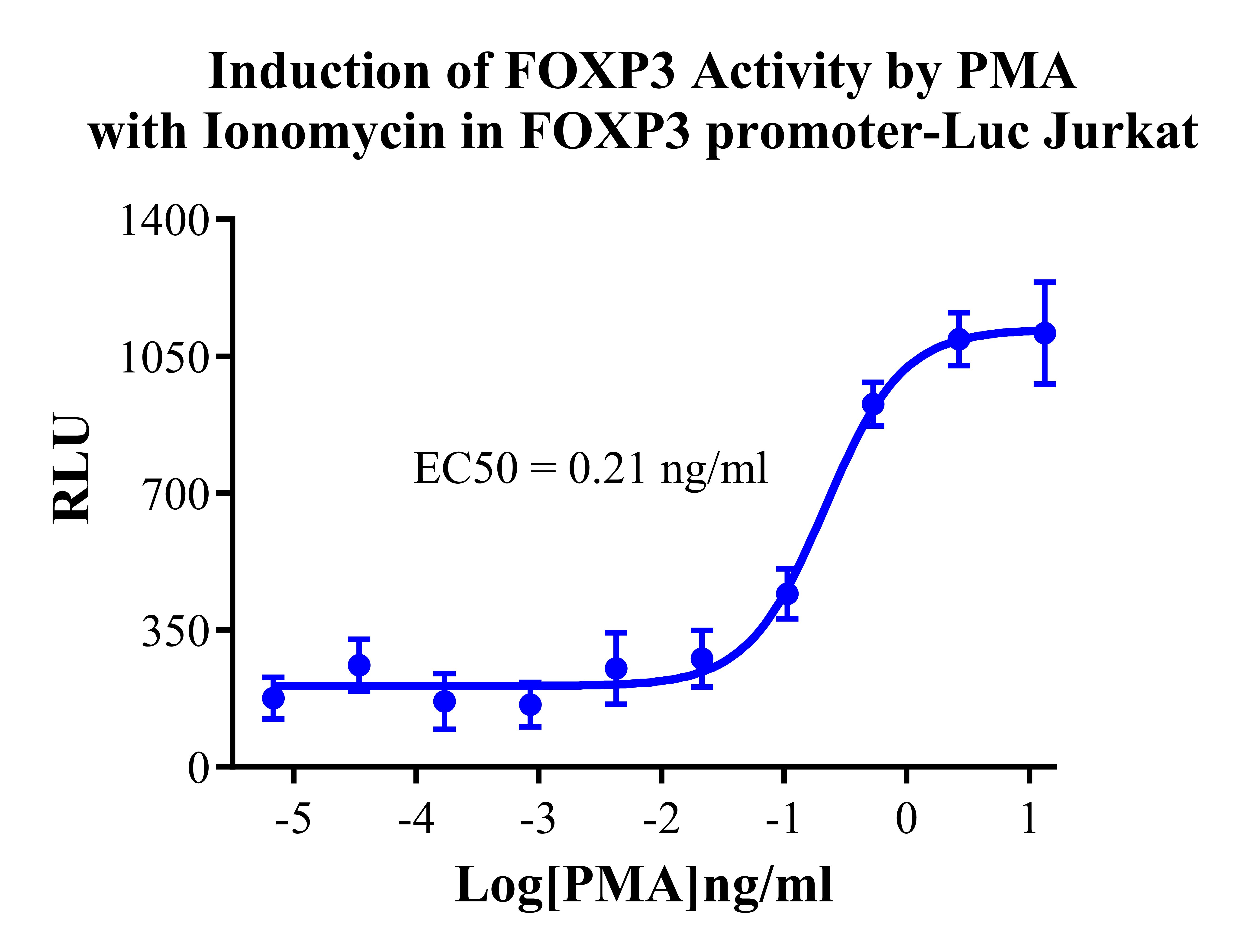 Figure 2. Detect Luciferase assay by Ultra Luciferase Detection Kit CBPH0001(we strongly suggest to purchase from Cobioer). Induction of FOXP3 Activity by PMA with Ionomycin in FOXP3 promoter-Luc Jurkat . |