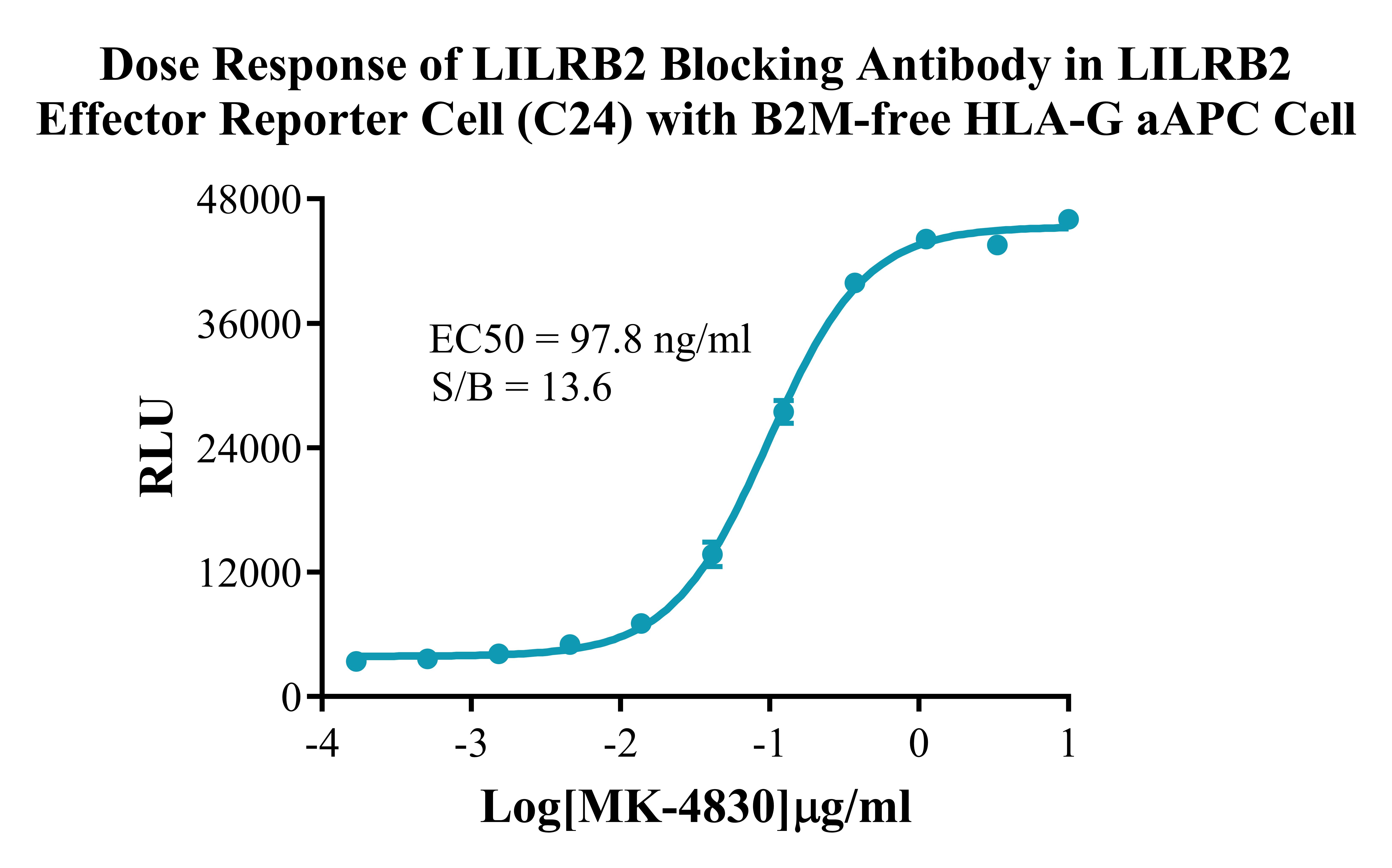Figure 3. Dose Response of LILRB2 Blocking Antibody in LILRB2 Effector Reporter Cell (C24) with B2M-free HLA-G aAPC Cell.