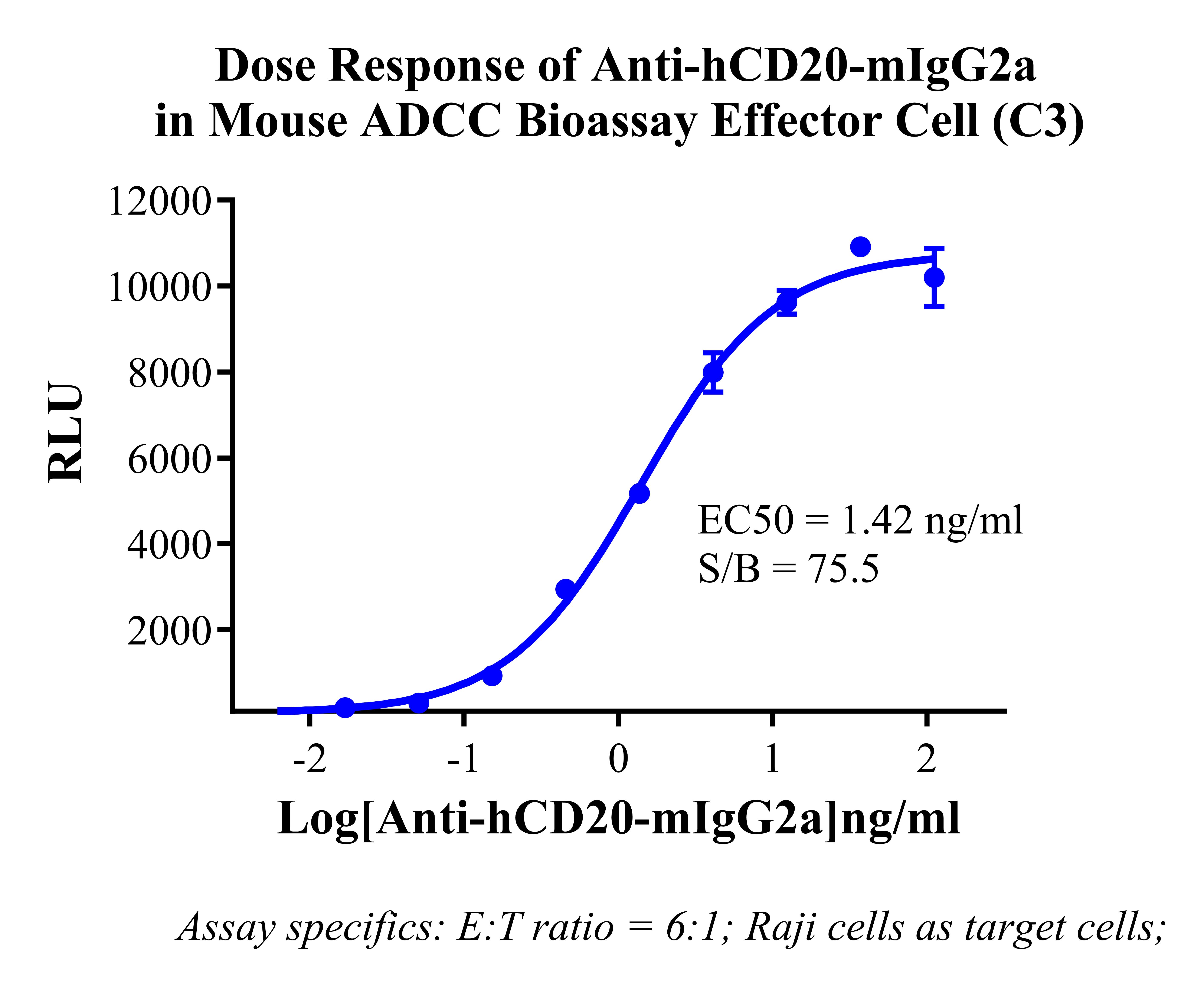 Figure 2. Dose response of Anti-hCD20-mIgG2a in Mouse ADCC Bioassay Effector Cell (C3).