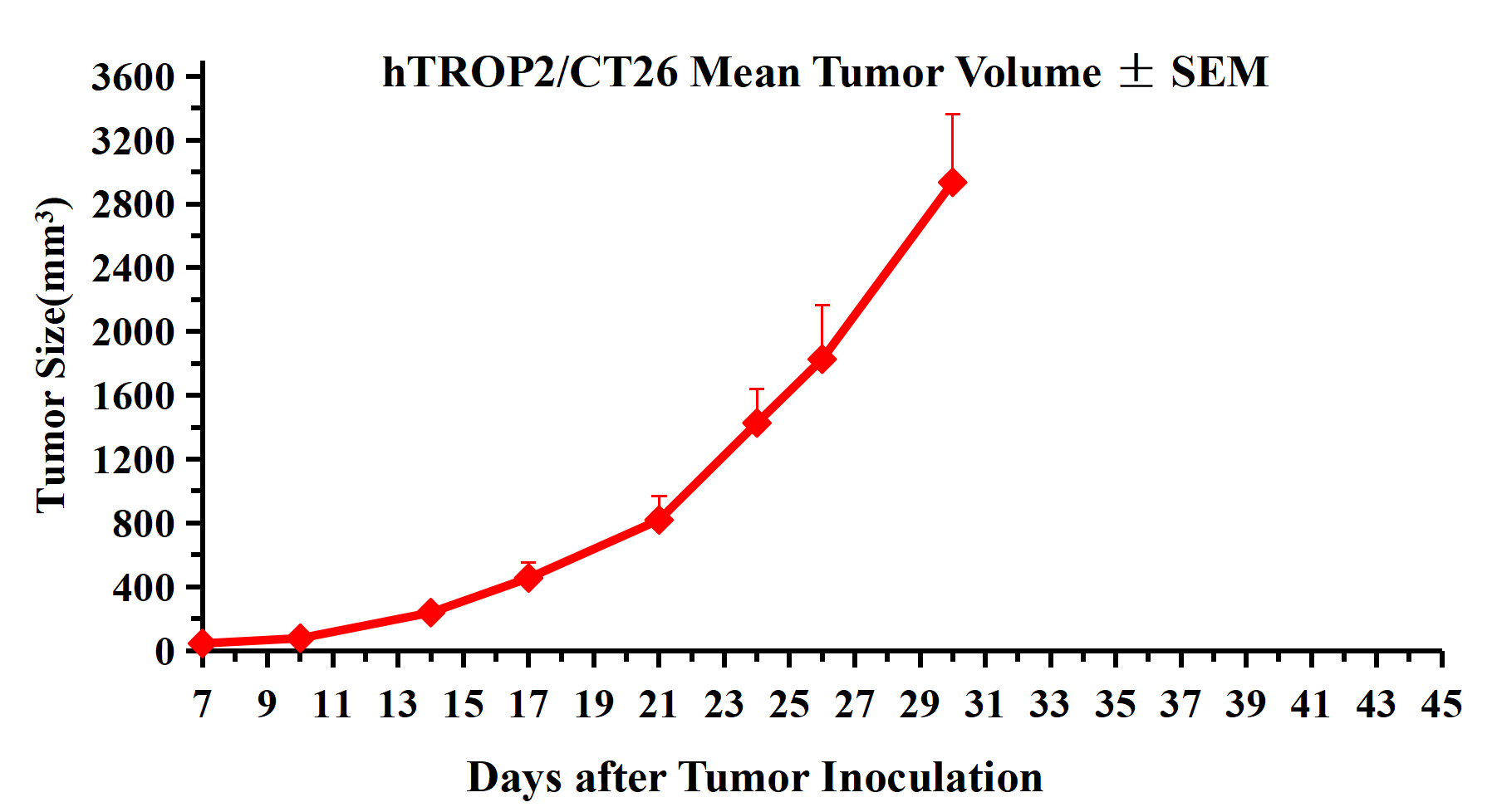 Figure 3.hTROP2/CT26 Mean Tumor Volume ± SEM .