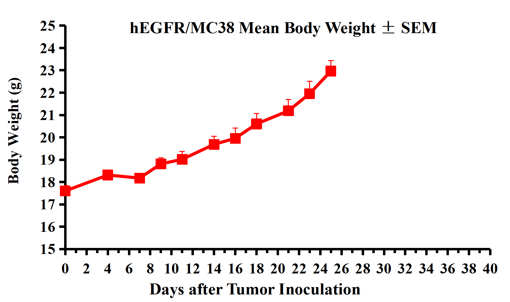 hEGFR/MC38 Mean Body Weight ± SEM.