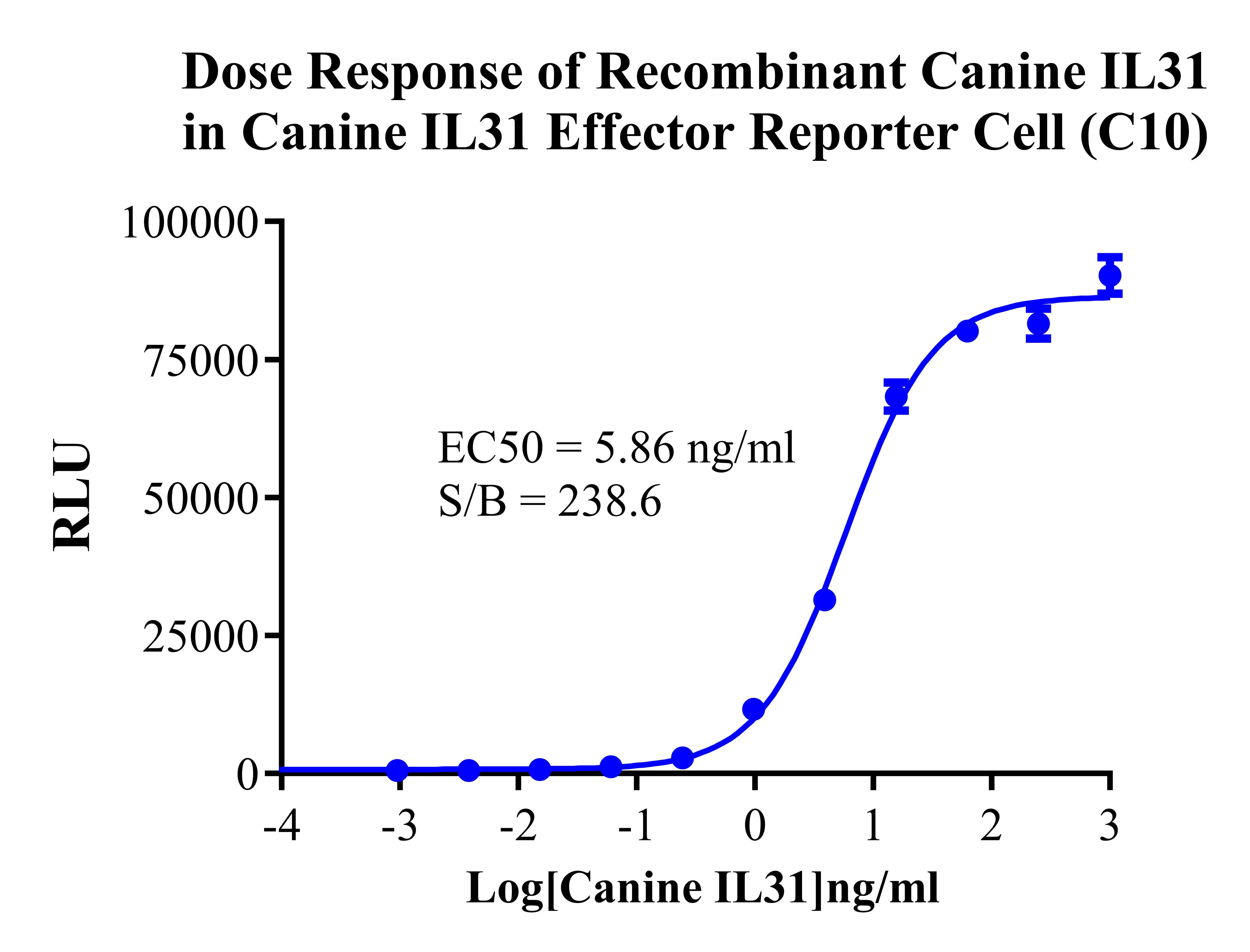 Figure 2. Dose Response of Recombinant Canine IL31 in Canine IL31 Effector Reporter Cell (C10).
