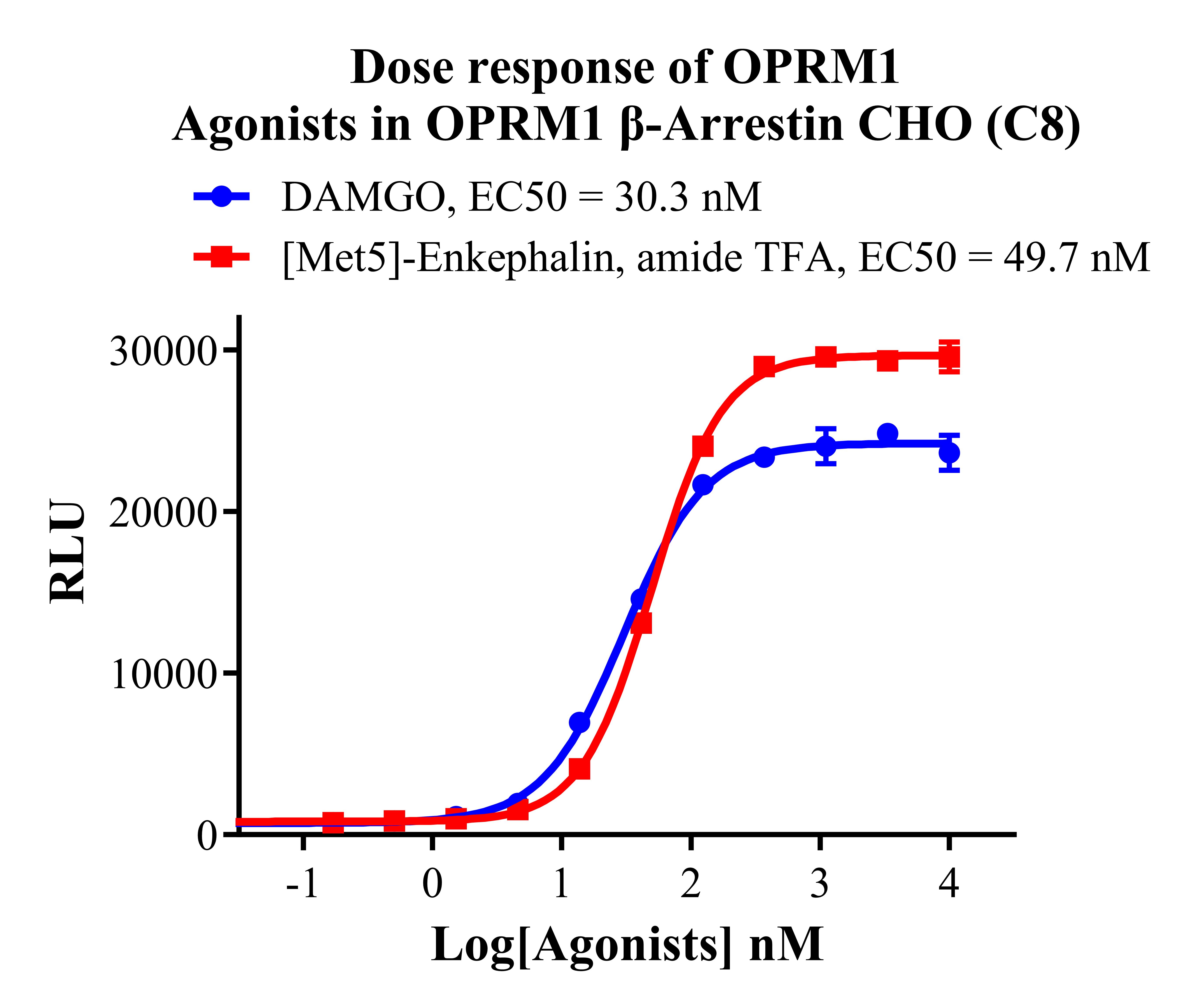 Figure 2. Dose response of  OPRM1 Agonists in OPRM1 β-Arrestin CHO(C8).
