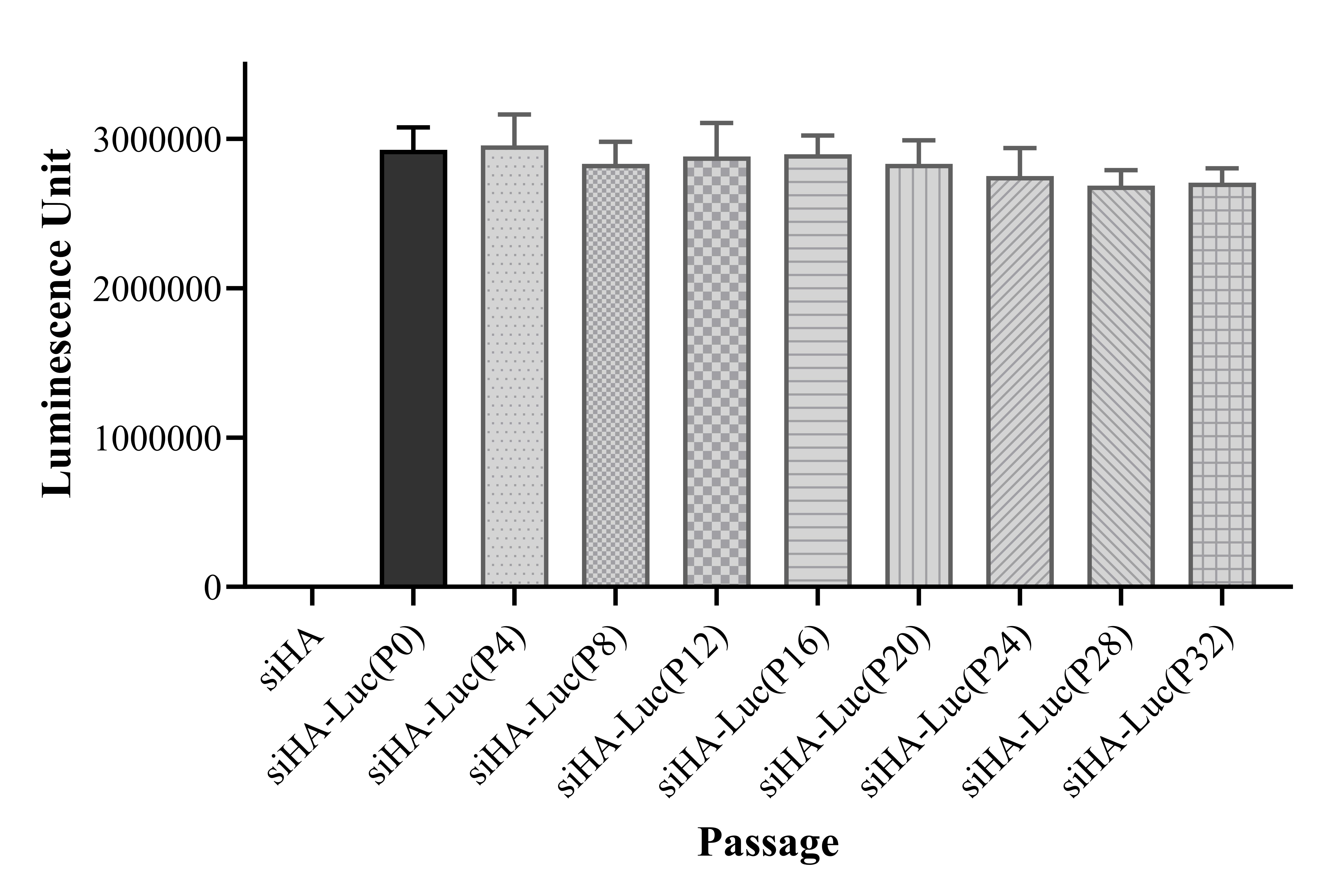 Figure 1. Stablity test results. SiHA-Luc showed at least 32 passage stability with similar luminescence unit.