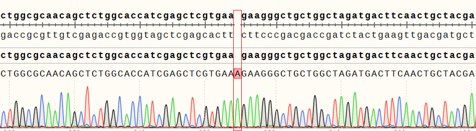 Figure 2. ACVR2A Effector Reporter Cell 測序結(jié)果 ACVR2B(NM_001106.4): c.221_222insA/ACVR2B:p.K74Kfs*7