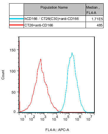 IV. Representative Data![]() Figure 1. Recombinant hCD166/CT26 stably expressing hCD166. |