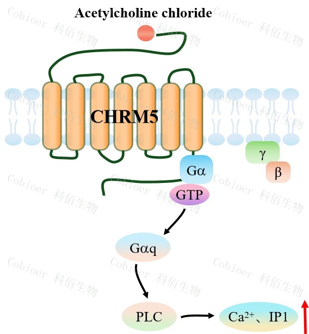 | CHRM5(Cholinergic Receptor Muscarinic 5)是毒蕈堿型乙酰膽堿受體(mAChRs)家 族成員之一,屬于 GPCR,主要分布于中樞神經(jīng)系統(tǒng)(如中腦多巴胺能神經(jīng)元、紋狀體) 及外周組織(如胰島β細(xì)胞),通過(guò)調(diào)控乙酰膽堿(ACh)信號(hào)影響?yīng)勝p通路、代謝穩(wěn)態(tài)及 藥物成癮行為。ACh 結(jié)合 CHRM5 后激活 Gq/11 蛋白,激活 PLCβ通路,水解 PIP2 生成 IP 3 和 DAG,驅(qū)動(dòng)鈣離子釋放及 PKC 活化;也通過(guò)β-arrestin 通路調(diào)控 ERK 磷酸化,影響基 因表達(dá)與細(xì)胞增殖。 | |