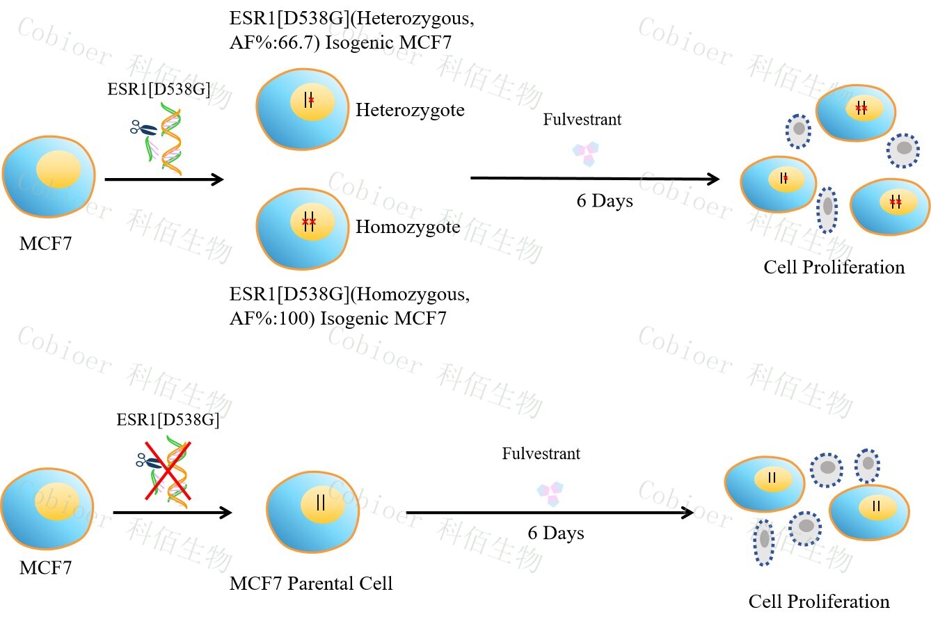 Figure 1. ESR1[D538G](Heterozygous,AF%66.7) Isogenic MCF7 原理示意圖