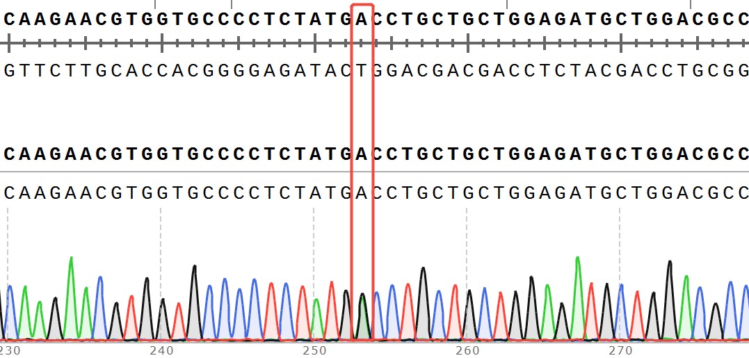 Figure 2. Sanger of  ESR1[D538G](Heterozygous,AF%:66.7) Isogenic MCF7.