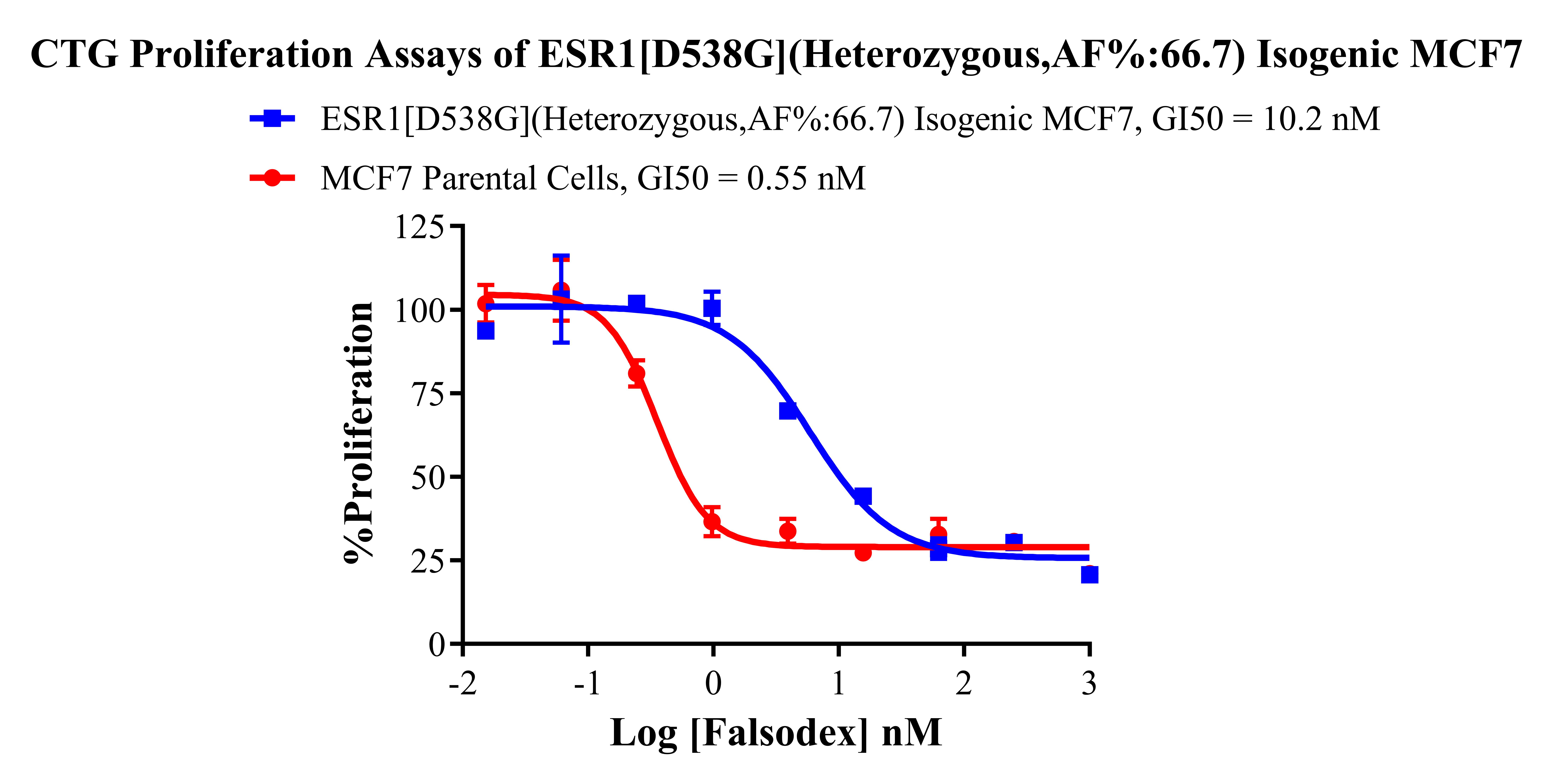 Figure 4. CTG Proliferation Assays of ESR1 [D538G](Heterozygous,AF%:66.7) Isogenie MCF7.