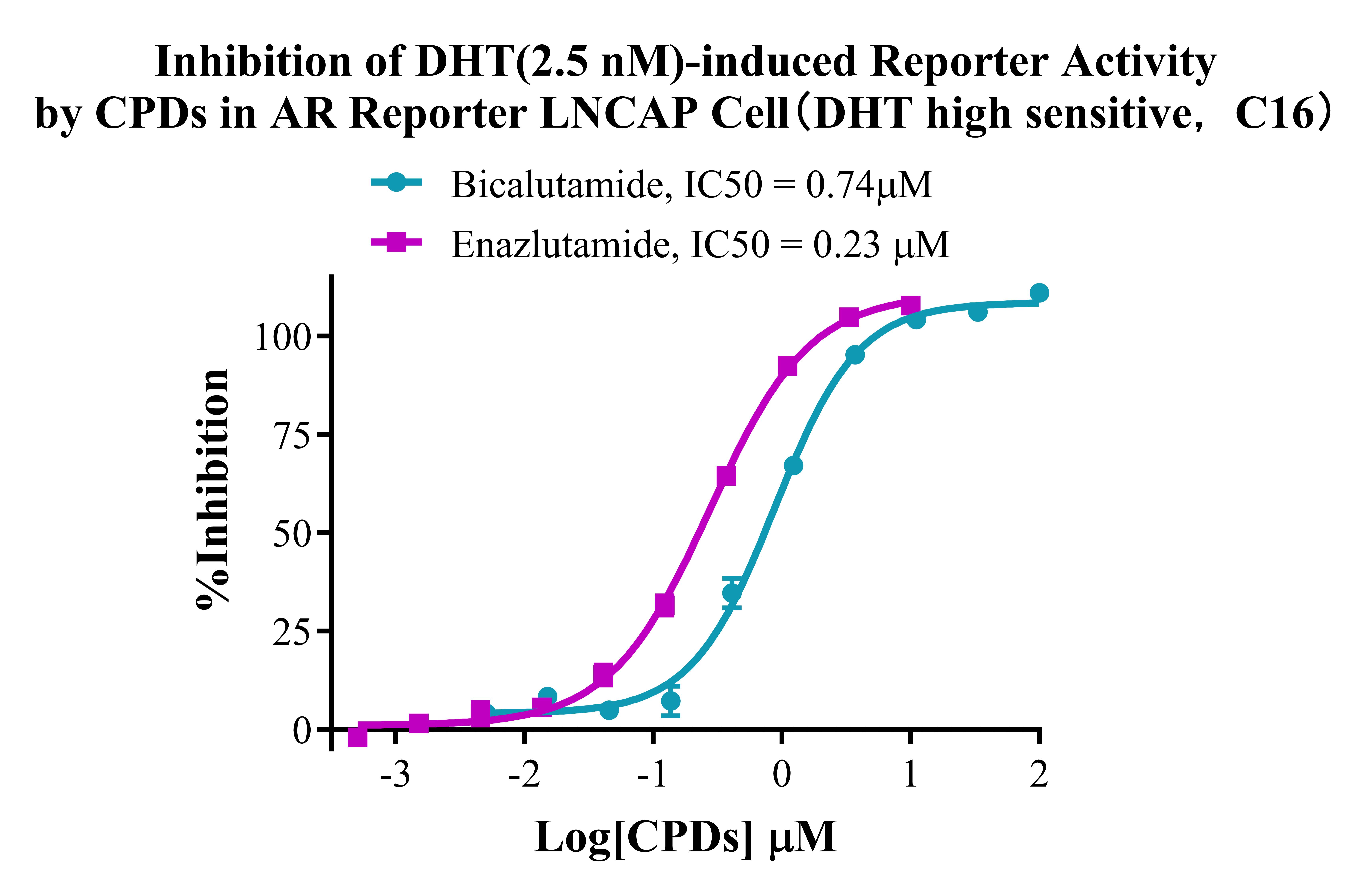 Figure 3. Inhibition of DHT(2.5nM)-induced Reporter Activity by CPDs in AR Reporter LNCAP Cell(DHT high sensitive,C16).