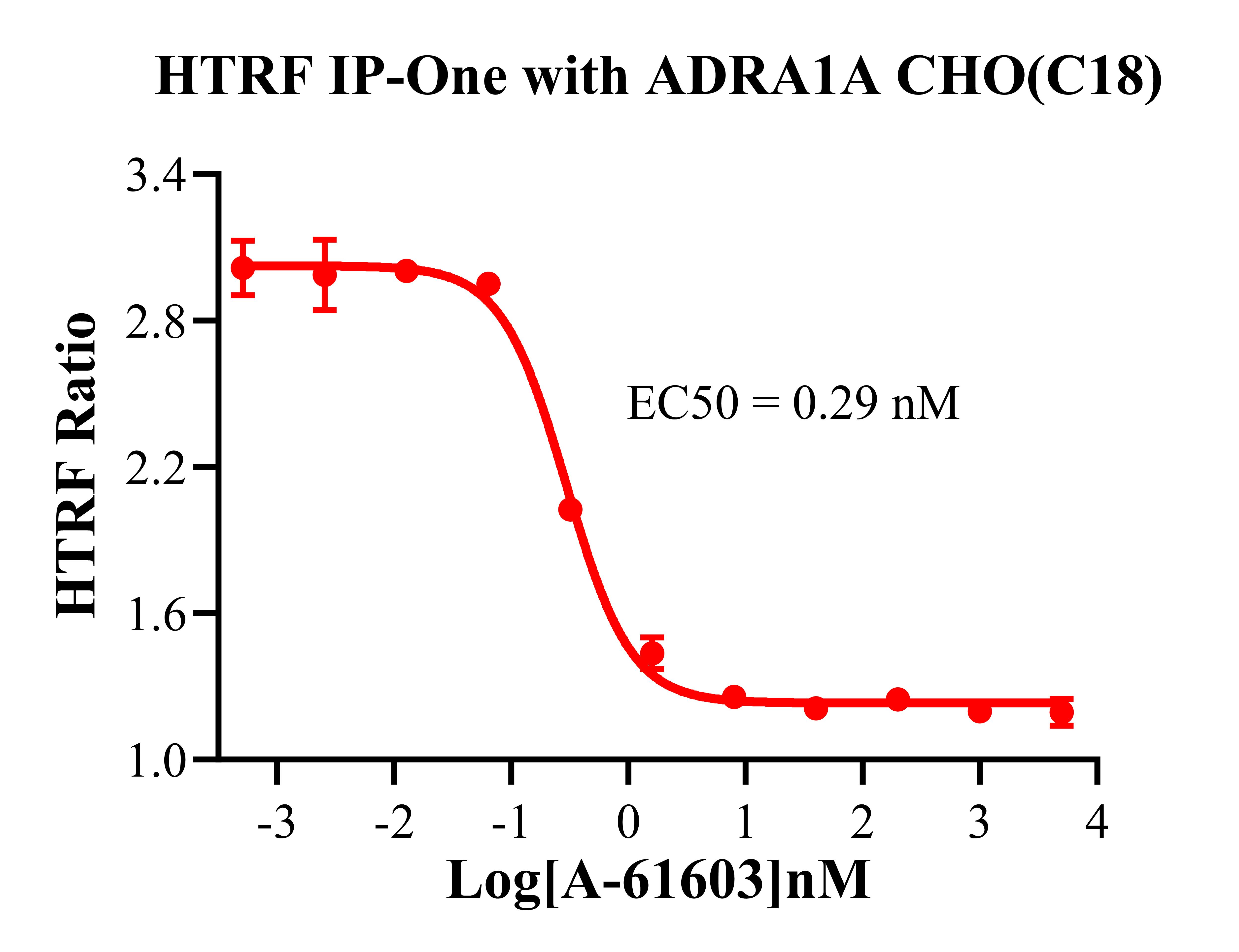 ADRA1A 還可以通過 Gq 蛋白的信號(hào)通路,調(diào)控 IP1 的升高。ADRA1A 與配體結(jié)合, 導(dǎo)致 Gαq 亞基的激活,觸發(fā) PLC-γ,從而產(chǎn)生兩個(gè)第二信使:IP3 和 DAG,它們參與細(xì)胞內(nèi)鈣動(dòng)員。由于 IP3 在代謝上不穩(wěn)定,因此測量通路激活的替代標(biāo)志物 IP1 作為檢測標(biāo)準(zhǔn)。