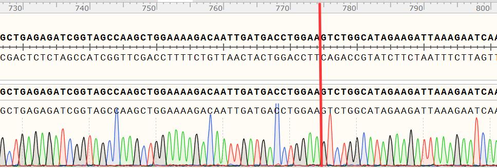 1.WB of TPM3(E8)-ROS1(E35) BaF3 Figure 2. WB of TPM3(E8)-ROS1(E35) BaF3 2.Sanger of TPM3(E8)-ROS1(E35) BaF3 |
