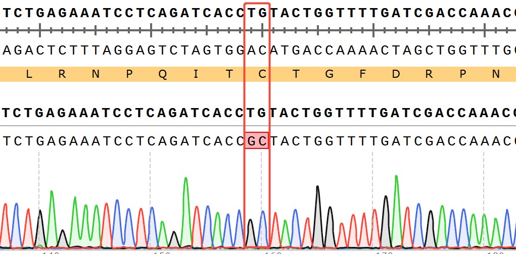 Figure 2. Sanger of WRN[C727A](Homozygous,AF%:100) Isogenic HCT116
