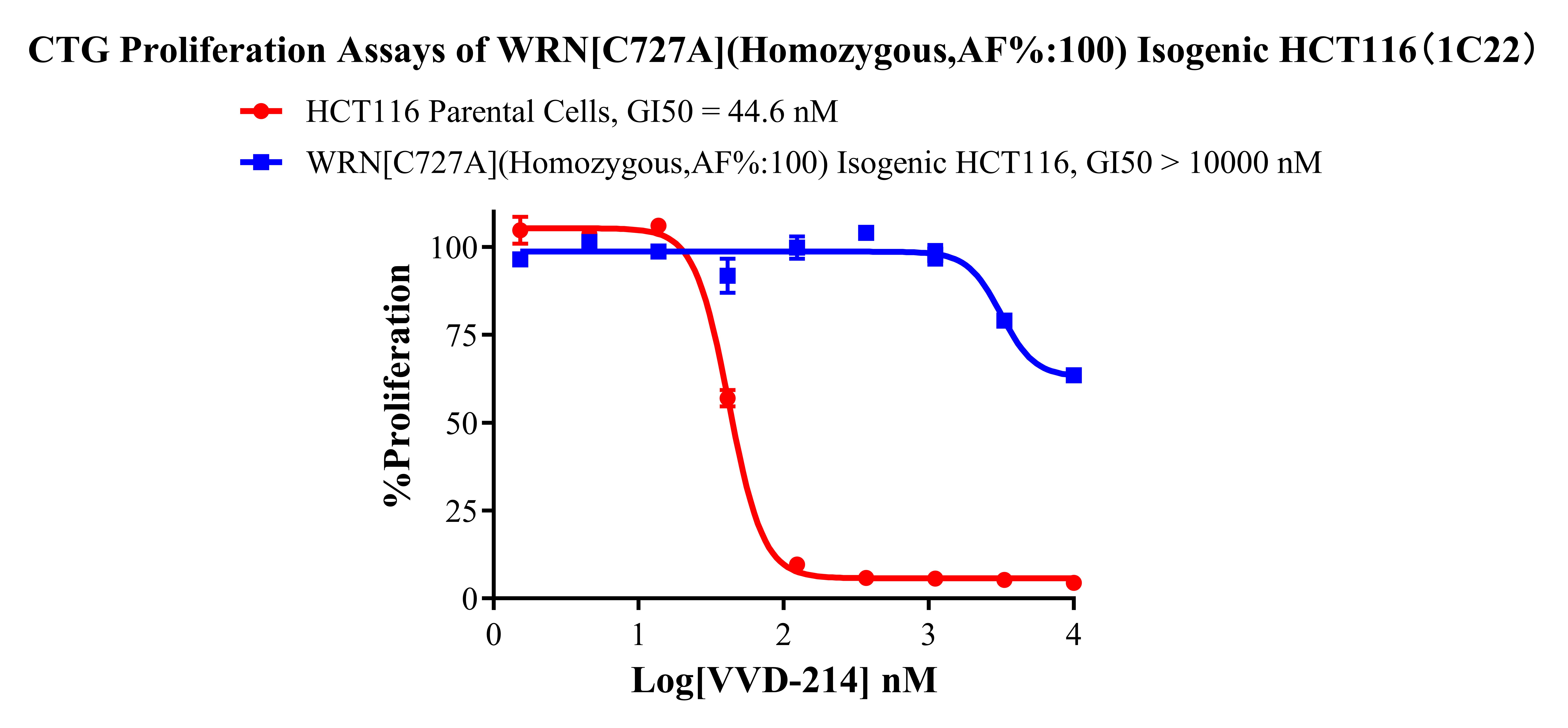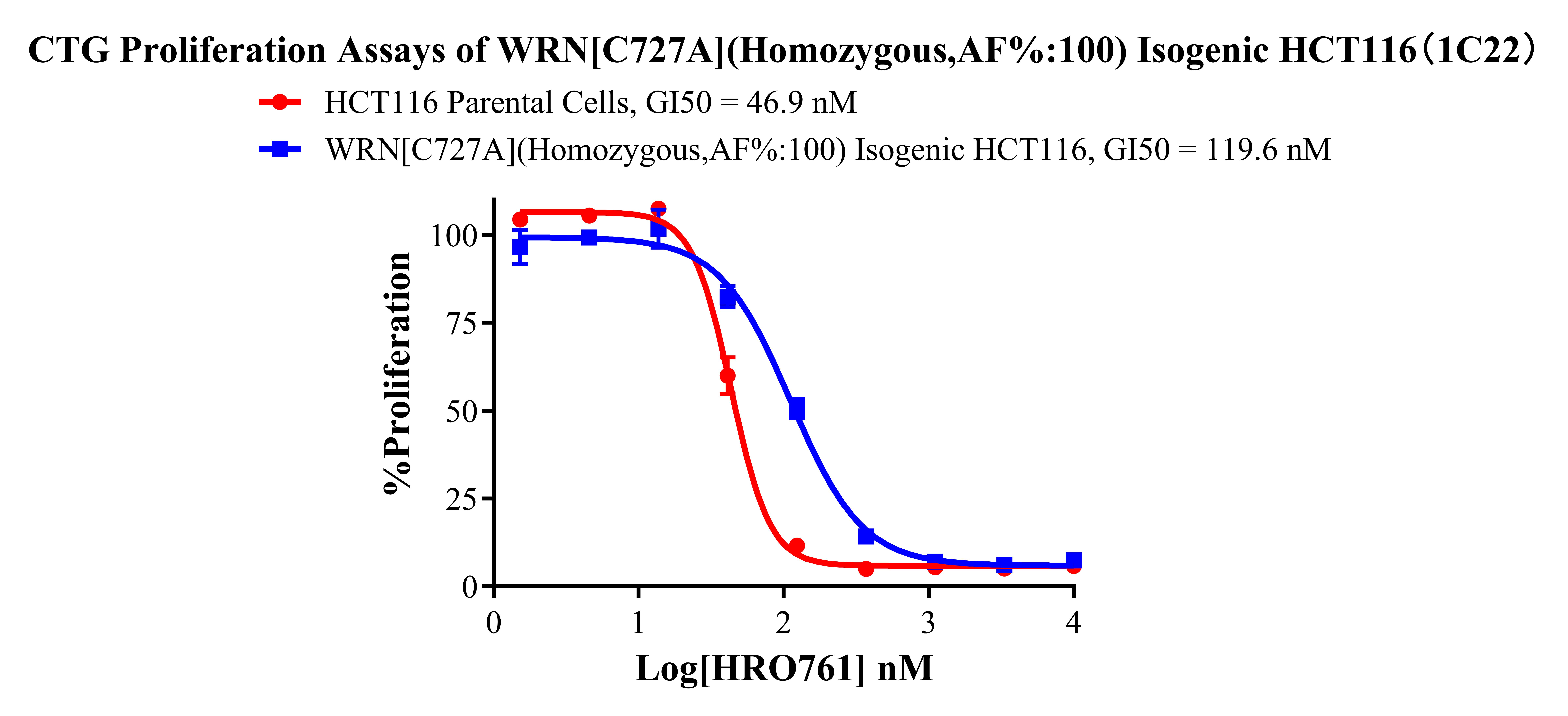 Figure 4. CTG Proliferation Assays of WRN[C727A](Homozygous,AF%:100) Isogenic HCT116(1C22).