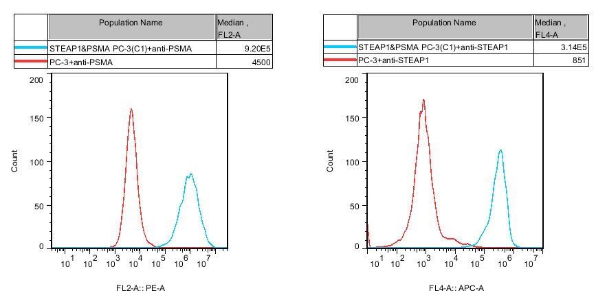 IV. Representative Data ![]() Figure 1. Recombinant hSTEAP1&hPSMA/PC-3 stably expressing STEAP1&PSMA. |