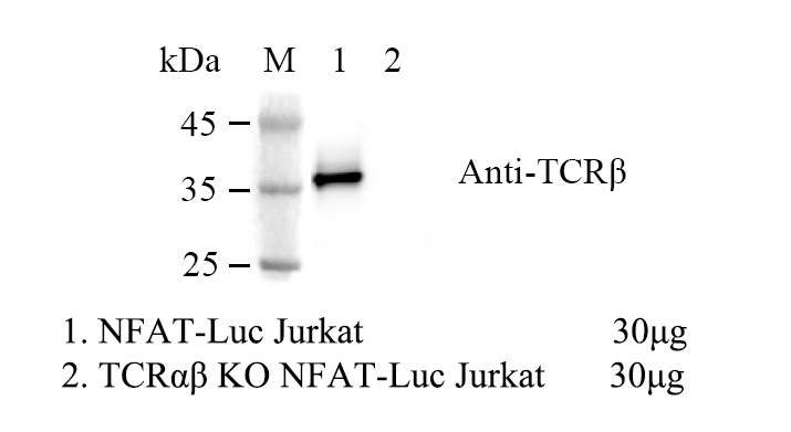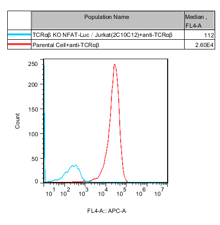 Figure 4. TCRαβ KO NFAT-Luc Jurkat在 NFAT-Luc Jurkat細(xì)胞上敲除 TCRαβ .
