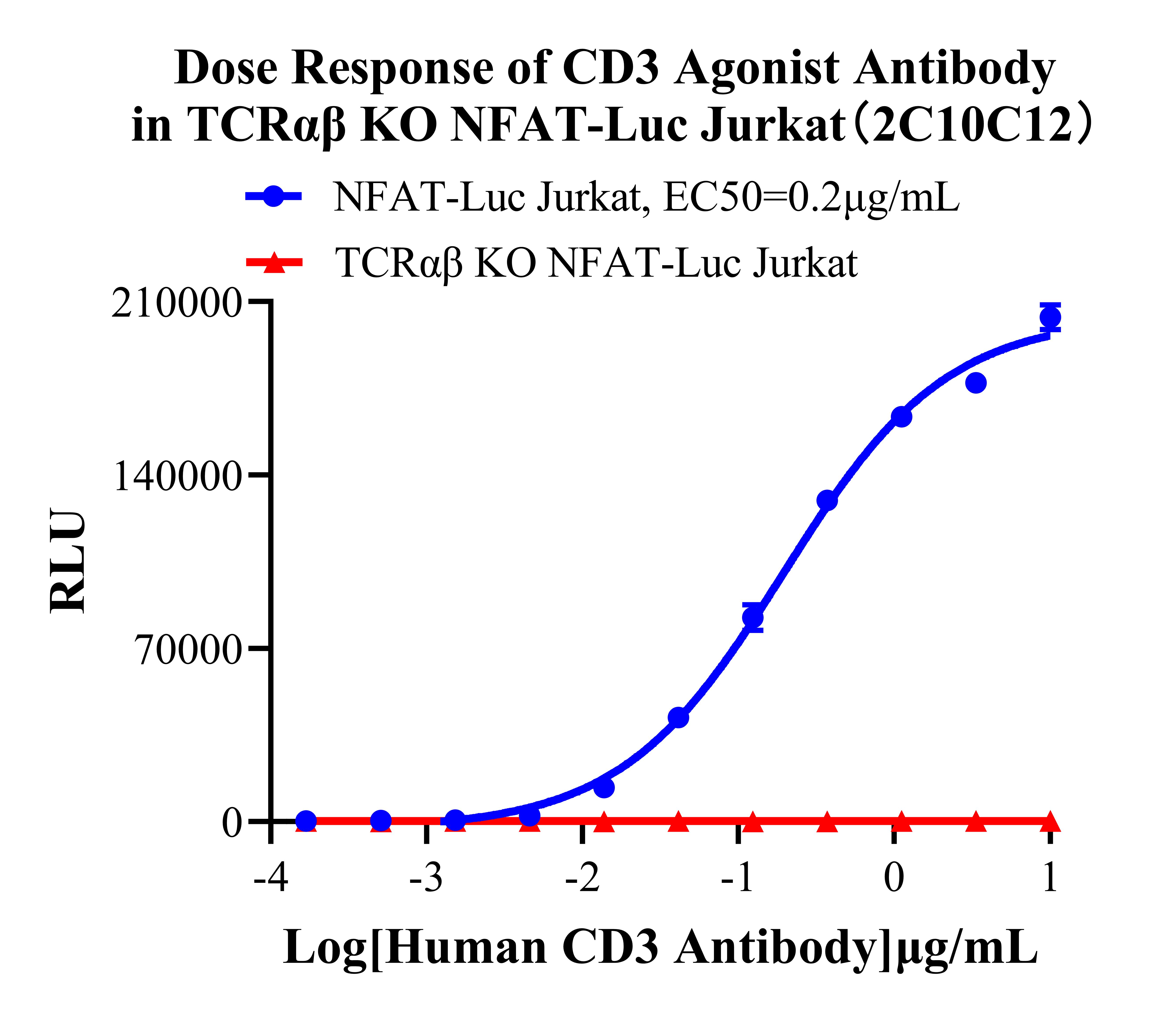 Figure 7. Dose Response of CD3 Agonist Antibody in TCRαβ KO NFAT-Luc Jurkat(2C10C12).