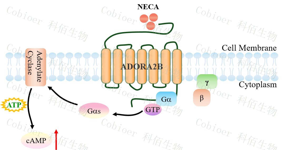 ADORA2B CHO 細(xì)胞藥靶模型很好的模擬了體內(nèi) ADORA2B 的信號(hào)轉(zhuǎn)導(dǎo)過(guò)程,原理見(jiàn)下圖所示。