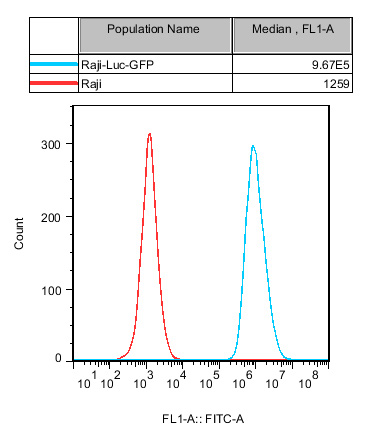 Figure 1. Recombinant Raji-Luc-GFP constitutively expressing GFP.