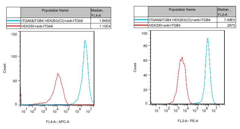 Figure 1. Recombinant ITGA6&ITGB4 HEK293 stably expressing ITGA6&ITGB4.