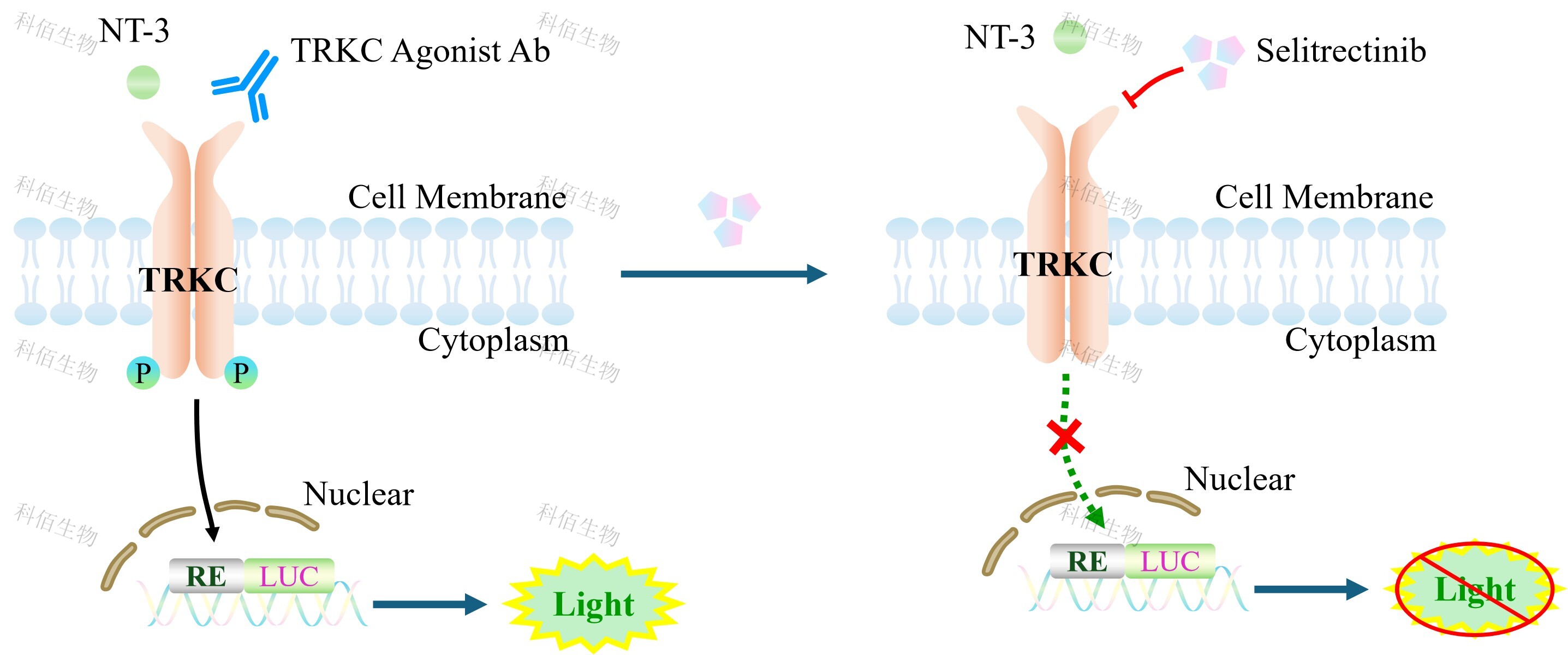 TRKC Effector Reporter Cell 模型原理圖