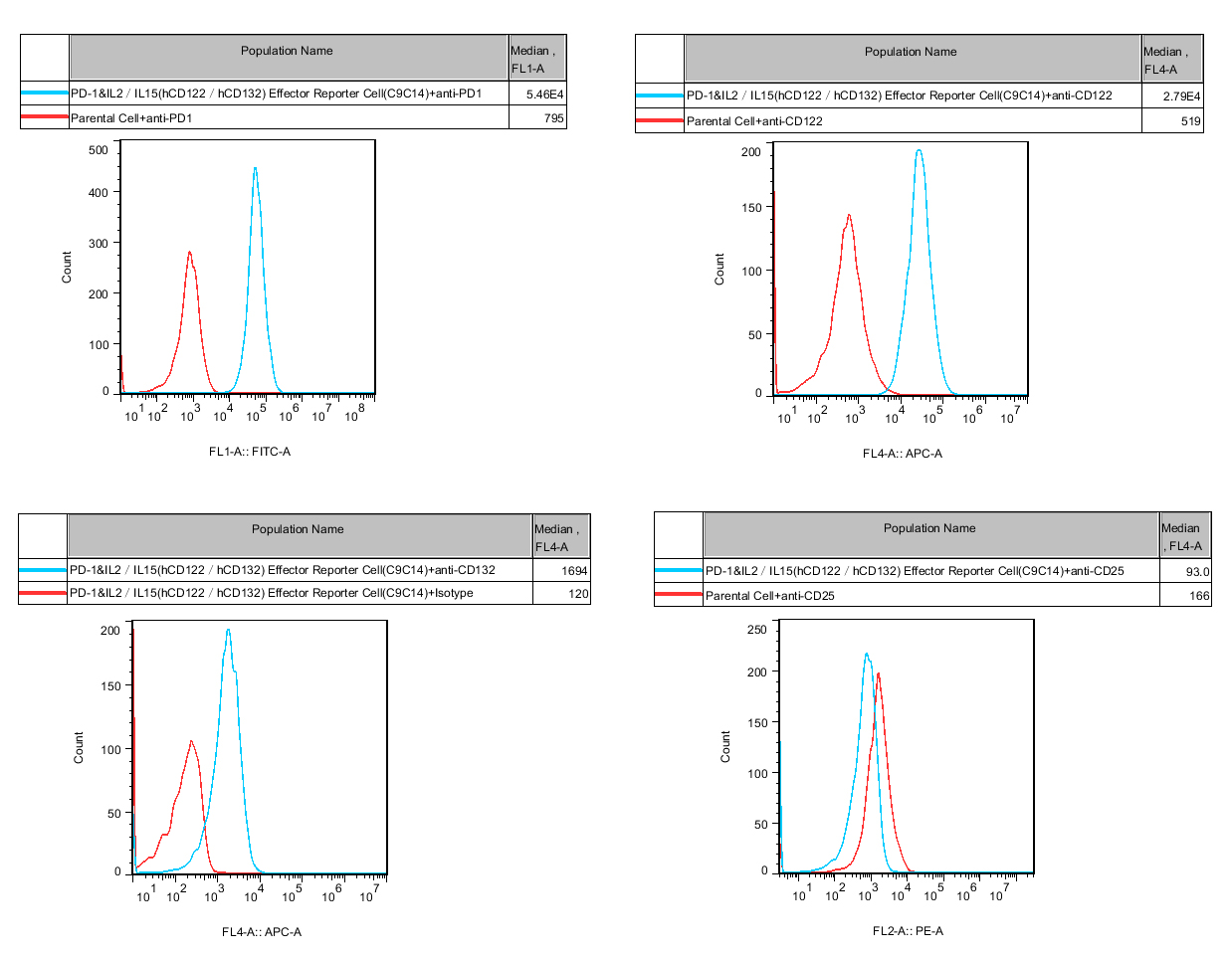 Figure 1. Recombinant PD-1&IL2/IL15(hCD122/hCD132) Effector Reporter Cell stably expressing PD1&CD122&CD132&CD25.