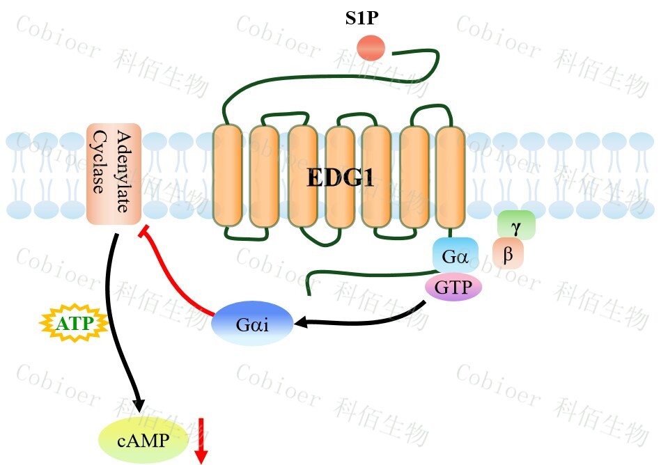 cAMP 在 G 蛋白偶聯(lián)受體(GPCR)信號轉(zhuǎn)導(dǎo)中是一種關(guān)鍵的第二信使。當(dāng)配體結(jié)合 到 GPCR,構(gòu)象發(fā)生變化,激活受體接著激活 G 蛋白,Gi 的激活導(dǎo)致腺苷酸環(huán)化酶調(diào)控 cAMP 的下調(diào)。EDG1(S1P1) CHO 藥靶模型很好的模擬了體內(nèi) EDG1(S1P1)的信號轉(zhuǎn)導(dǎo)過程, 原理見下圖所示。