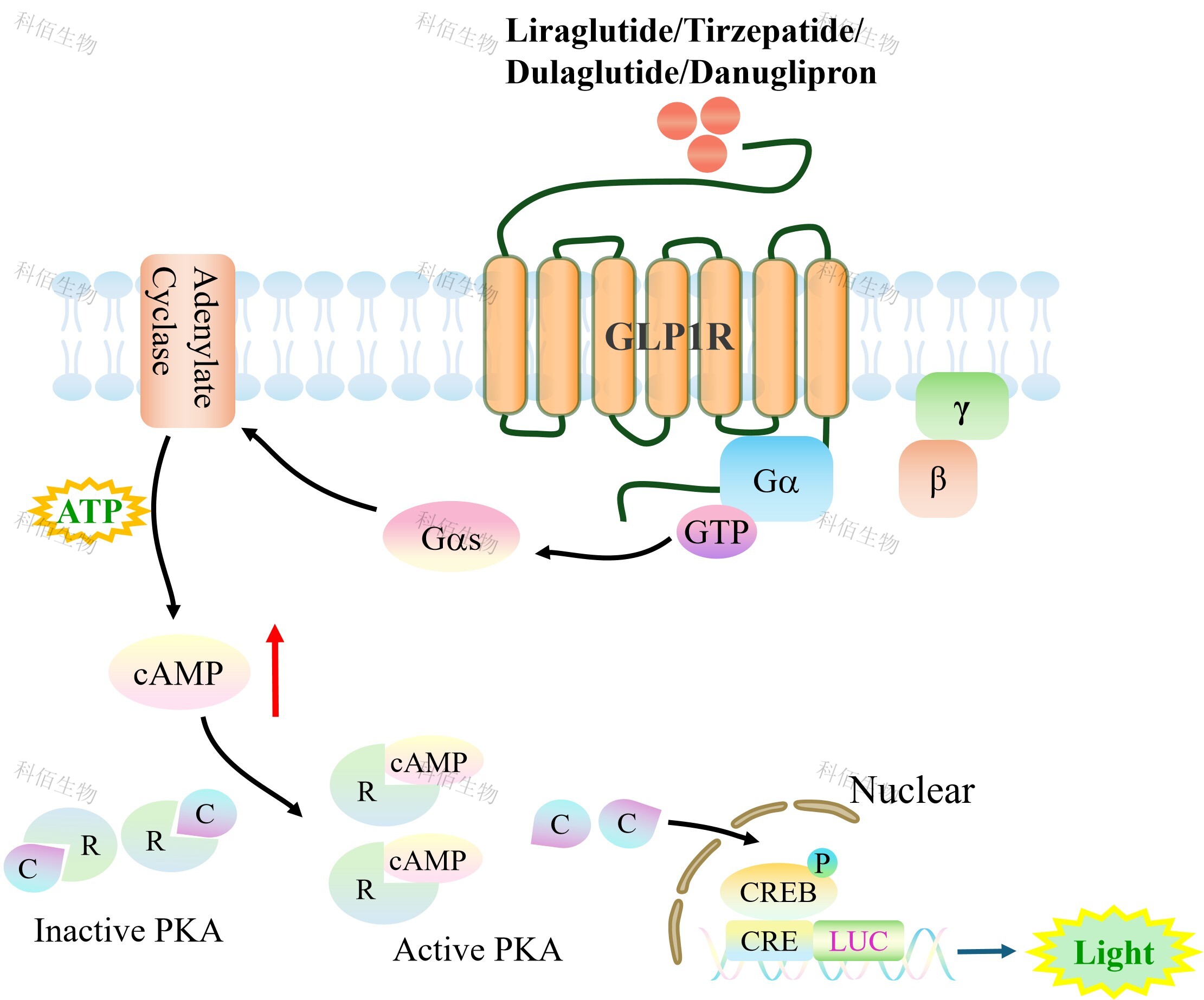 Figure 1. GLP1R CRE-Luc HEK293 細(xì)胞模型原理圖