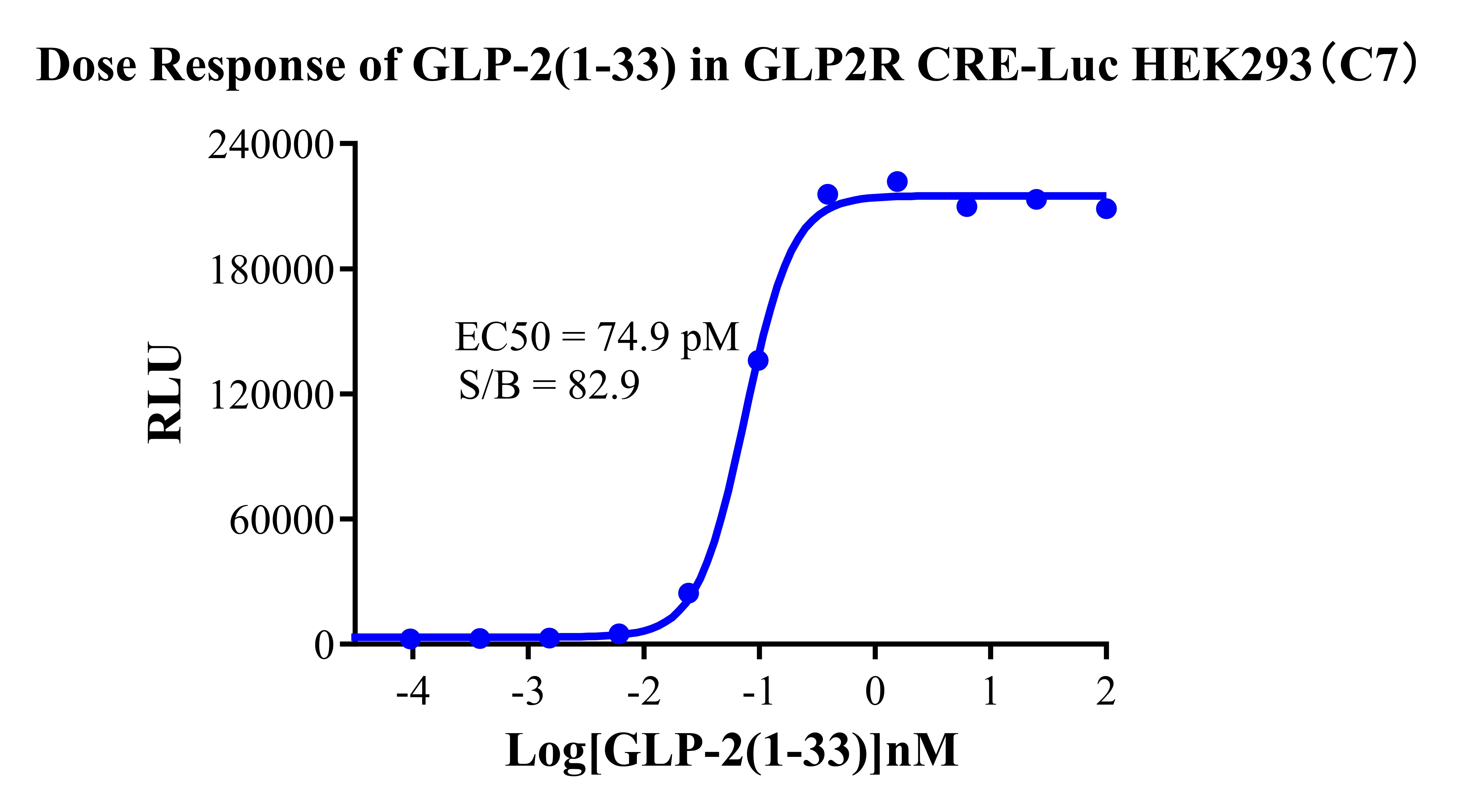Figure 3. Dose response of GLP-2(1-33) (Human) in GLP2R CRE-Luc HEK293 Cells (C7). |