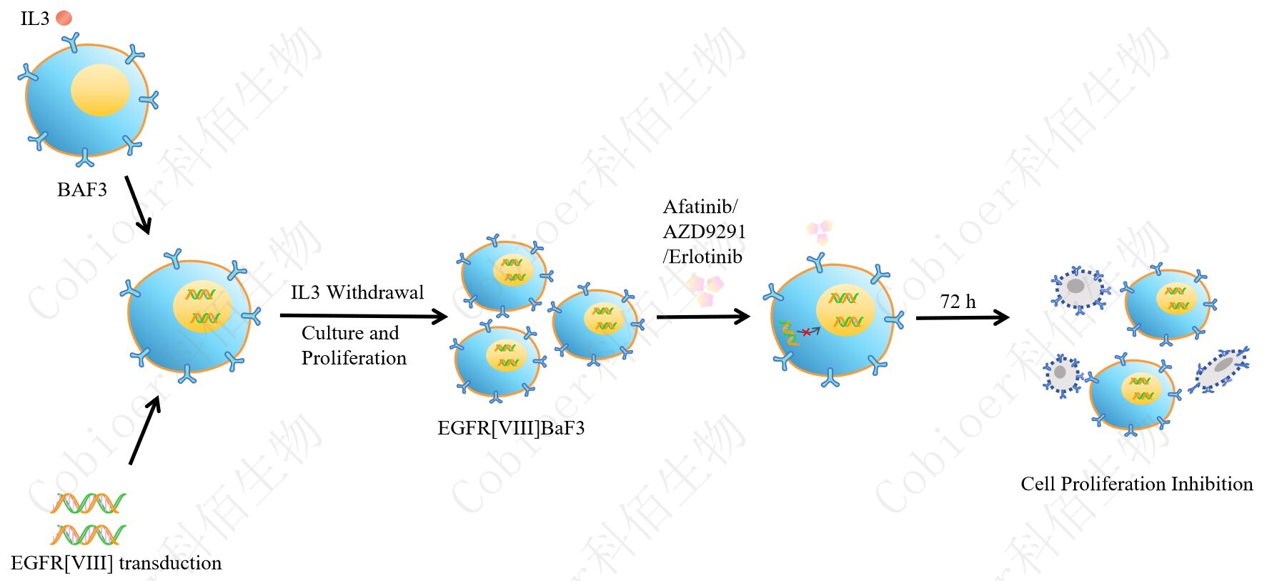 Figure 1. EGFR[VⅢ] BaF3 細胞的構(gòu)建原理圖