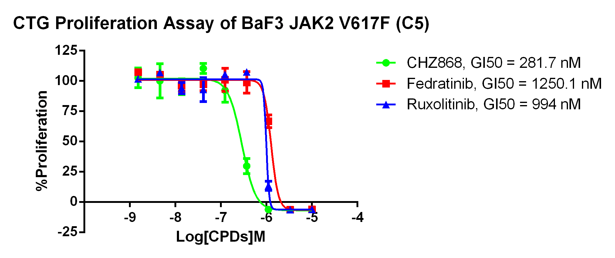 Figure 2. CTG Proliferation Assay of BaF3 JAK2 V617F (C5).