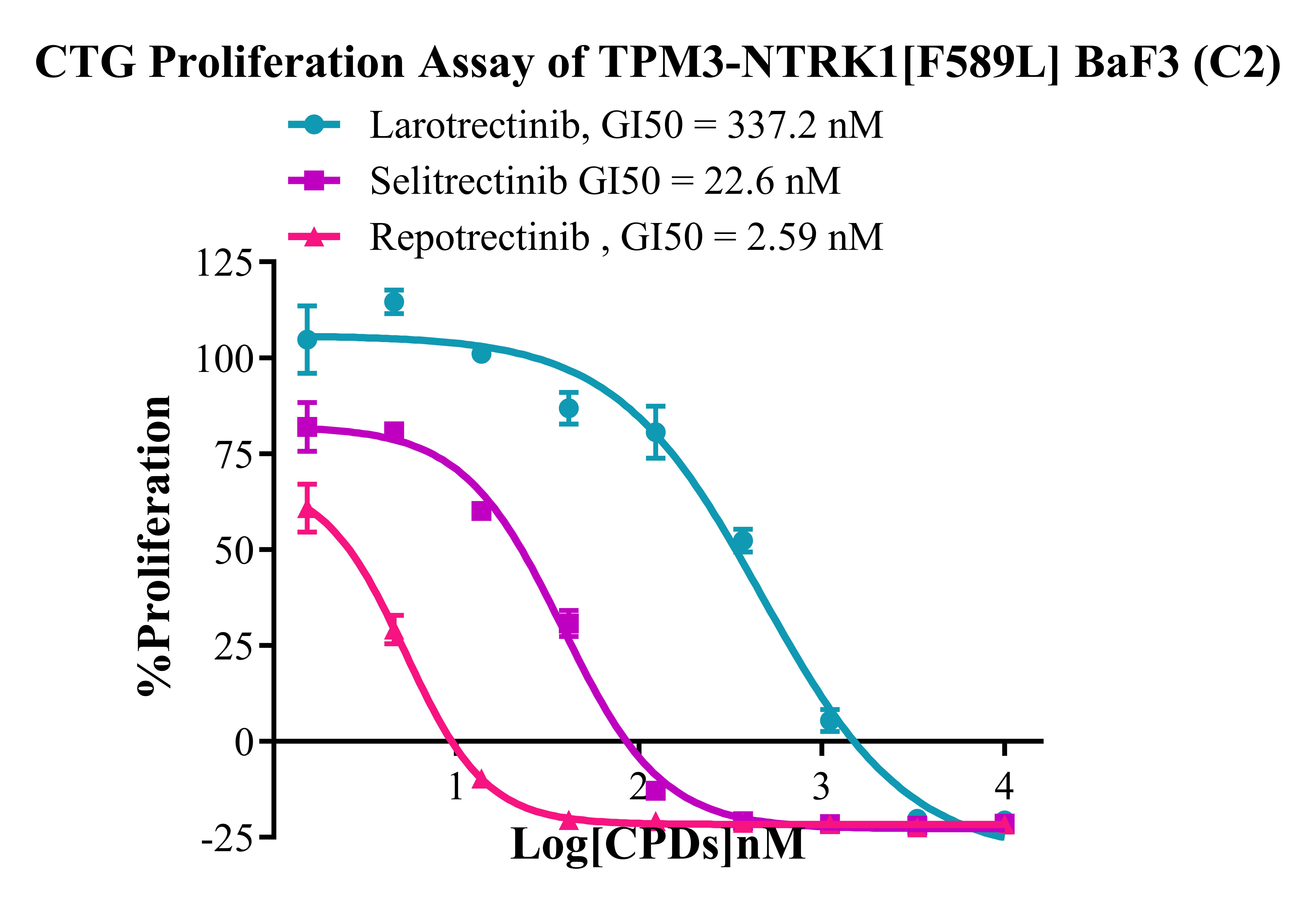 Figure 2. CTG Proliferation Assay of  TPM3-NTRK1 [F589L]/BaF3 BaF3(C2).