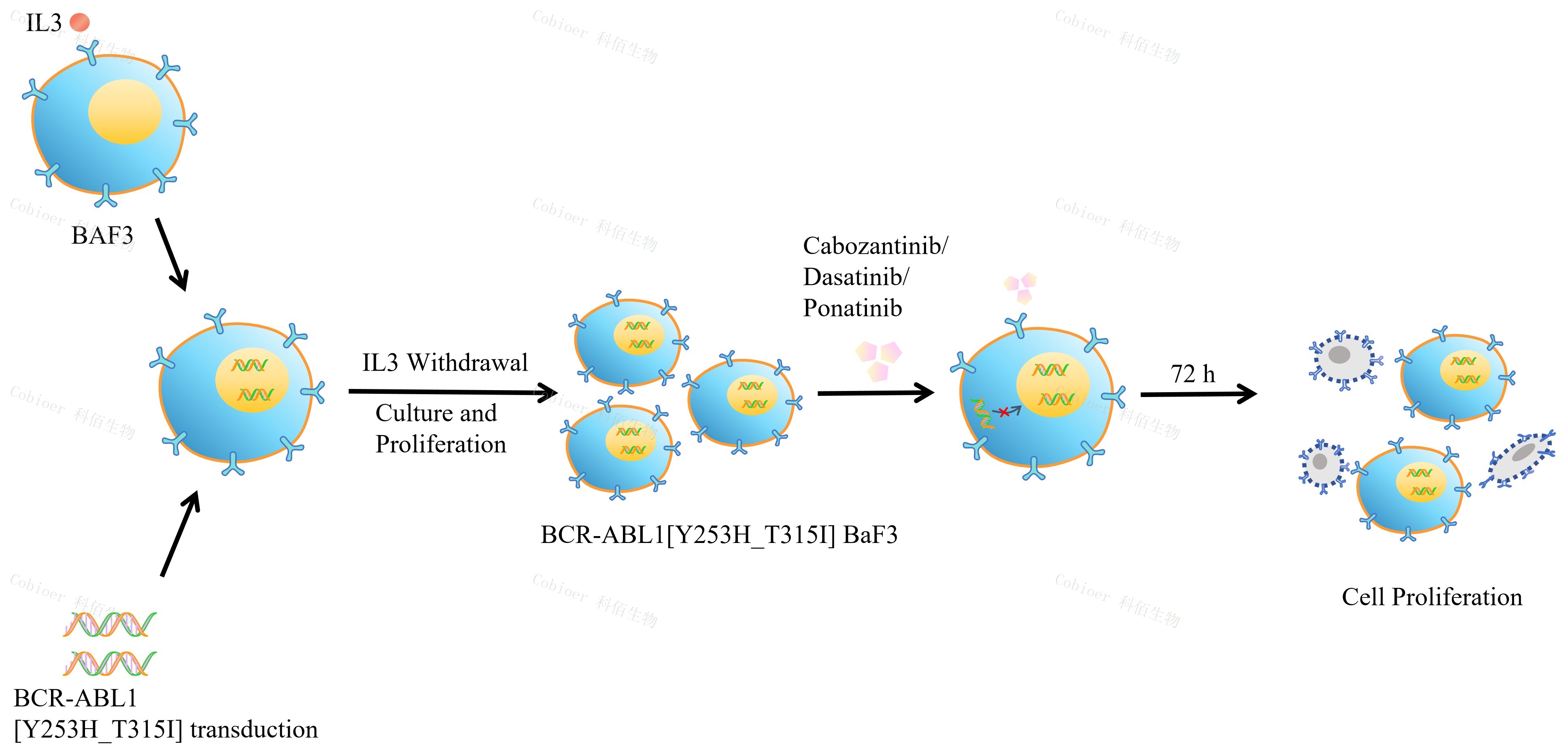 BCR-ABL1[Y253H_T315I] BaF3 細胞的構建原理圖