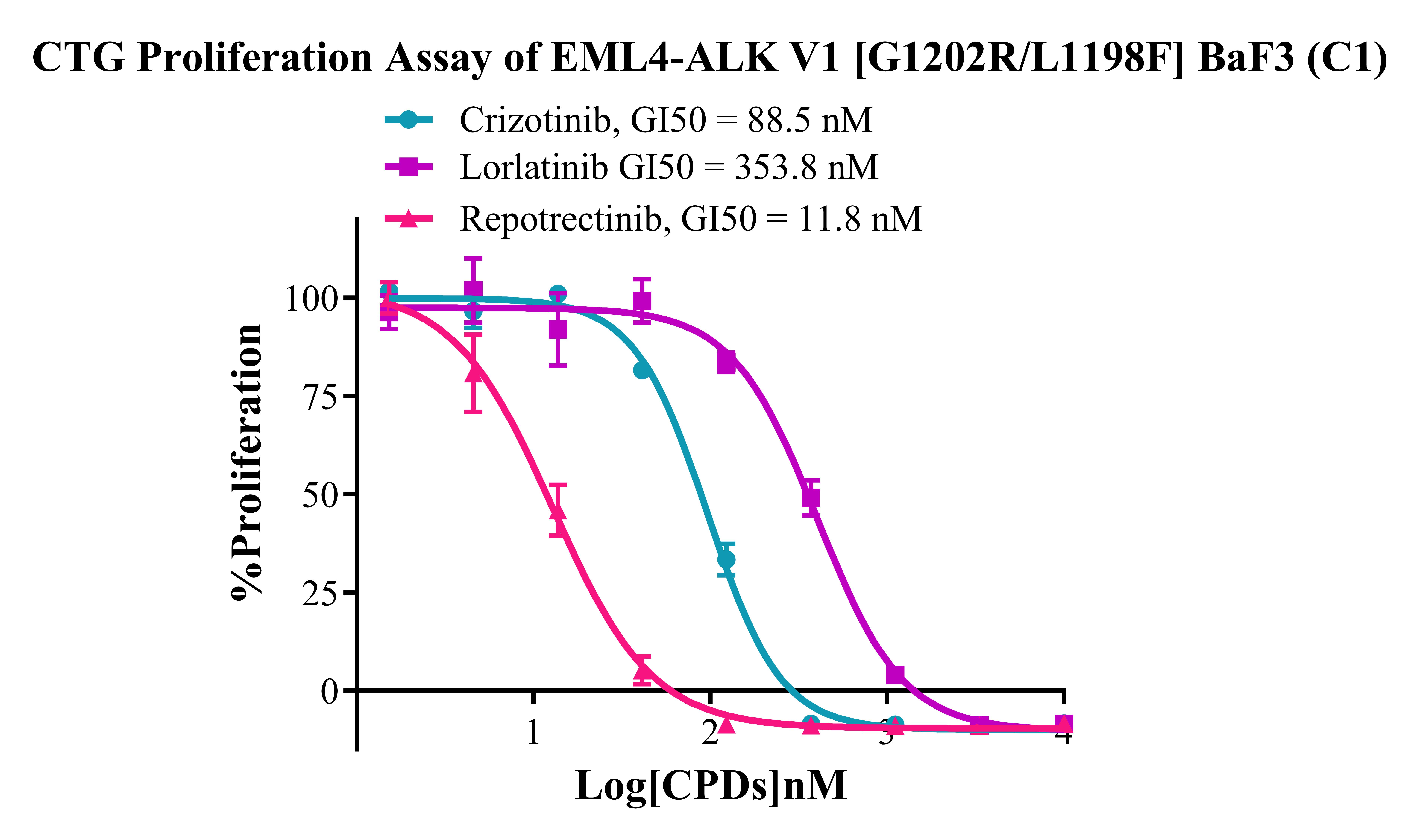 Figure 5. CTG Proliferation Assay of EML4-ALK V1 [G1202R/L1198F] BaF3(C1). |