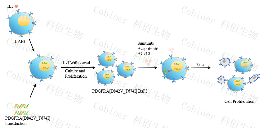 Figure 1. PDGFRA[D842V_T674I] BaF3 細(xì)胞的構(gòu)建原理圖