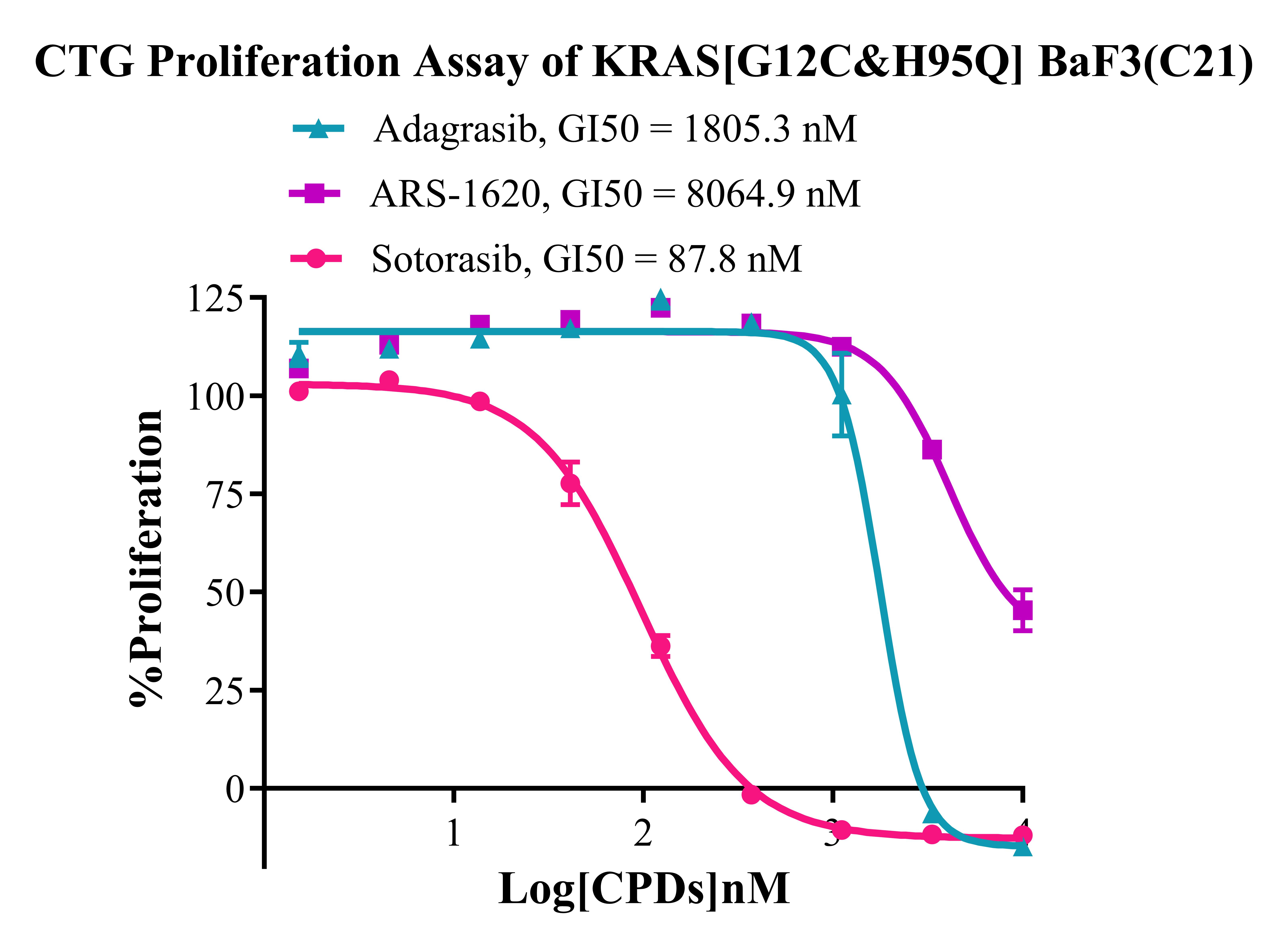 Figure 3. CTG Proliferation Assay of KRAS[G12C&H95Q] BaF3(C21).