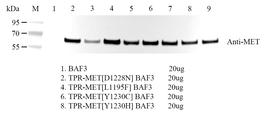 Figure 2. WB of TPR-MET [Y1230H]/BaF3
