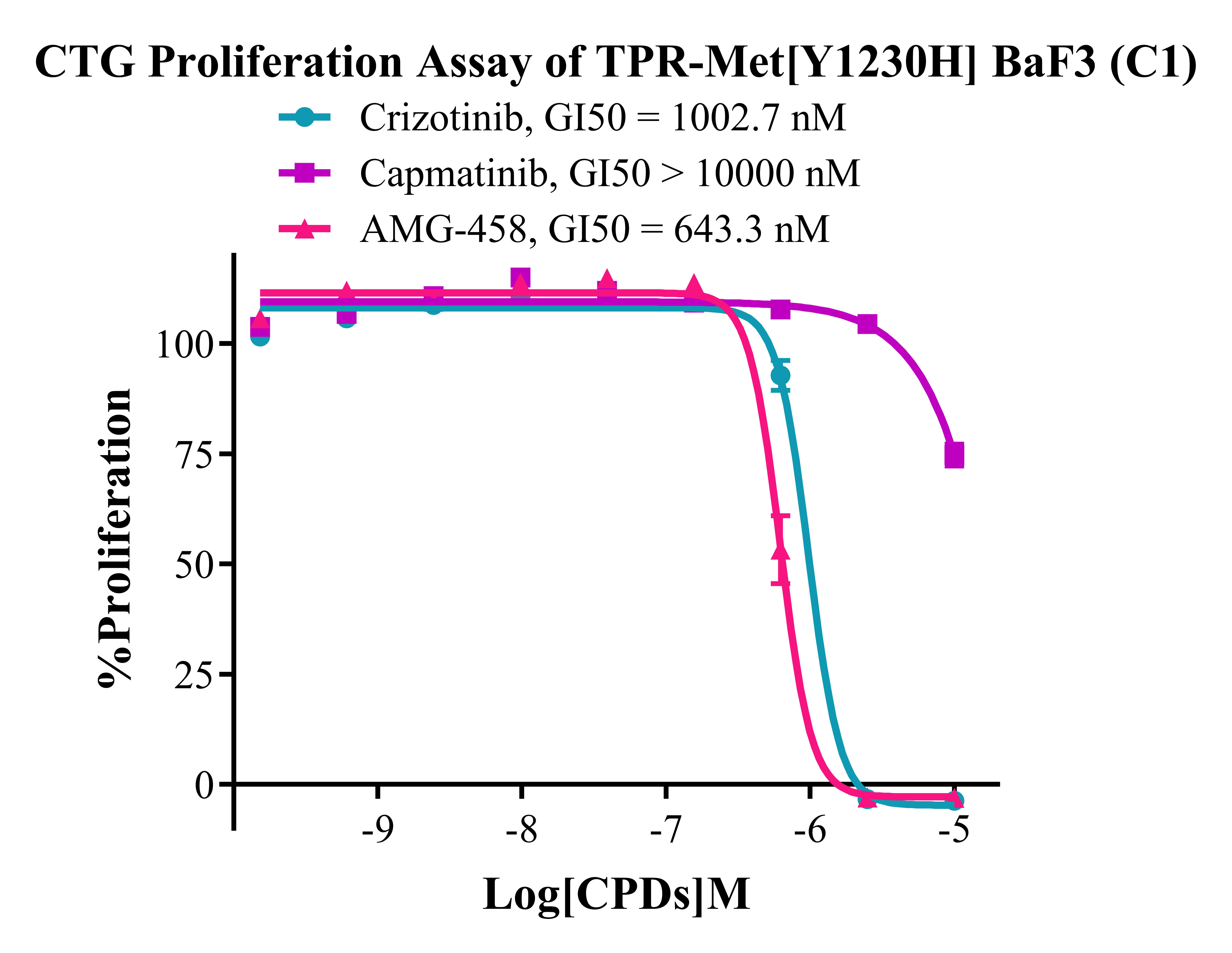 Figure 5. CTG Proliferation Assay of TPR-Met [Y1230H] BaF3 (C1).