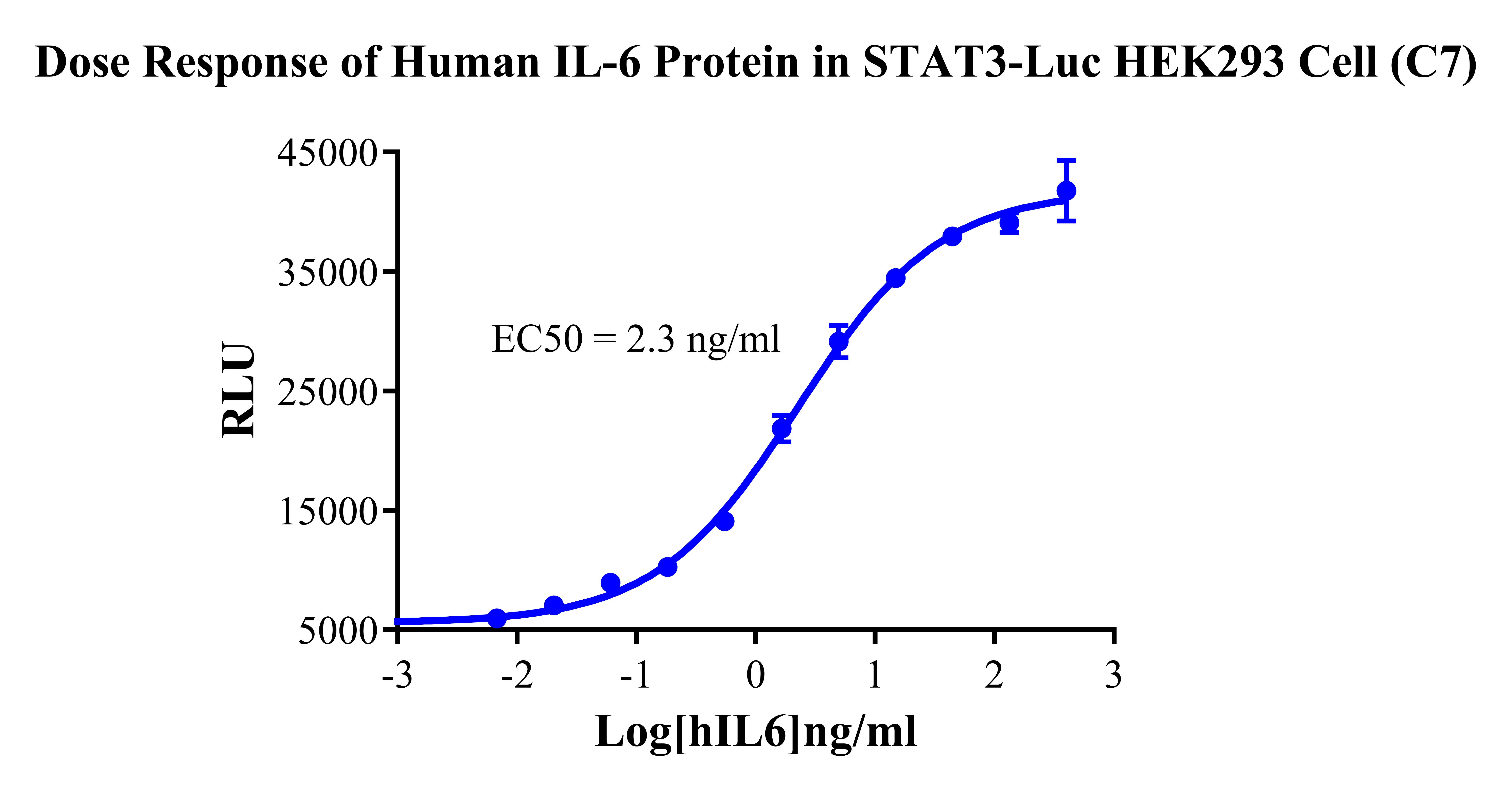 Figure 2. Detect Luciferase assay by Ultra Luciferase Detection Kit CBPH0001(we strongly suggest to purchase from Cobioer). Dose Response of  Human IL-6 Protein in STAT3-Luc HEK293 Cell(C7).