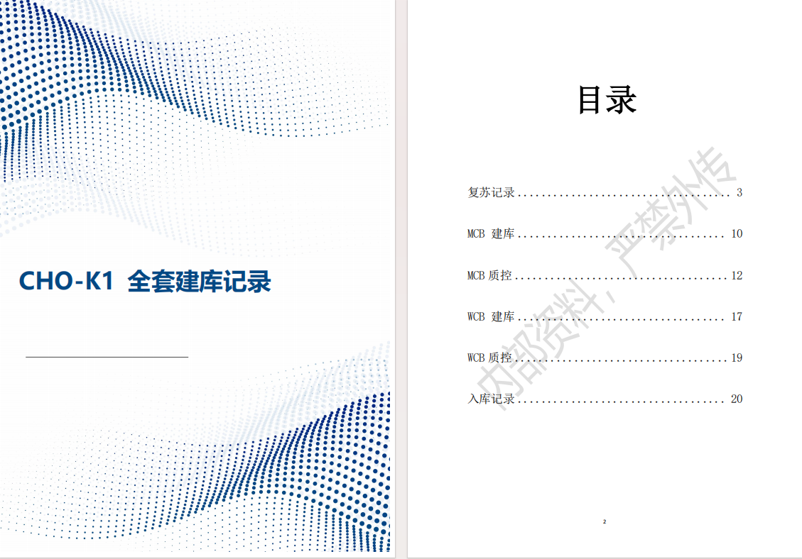 全套建庫(kù)記錄:復(fù)蘇記錄→MCB建庫(kù)→MCB質(zhì)控→WCB建庫(kù)→WCB質(zhì)控→入庫(kù)記錄,形成從細(xì)胞復(fù)蘇、主細(xì)胞庫(kù)(MCB)到工作細(xì)胞庫(kù)(WCB)的全套建庫(kù)操作記錄,保證工藝鏈條完全可追溯與質(zhì)量可控。