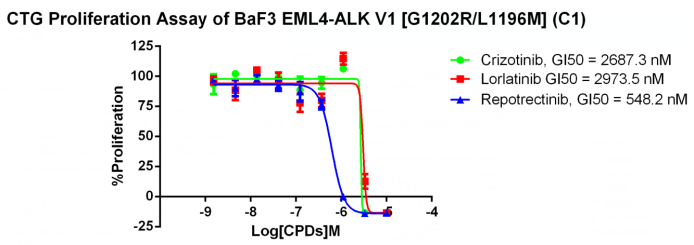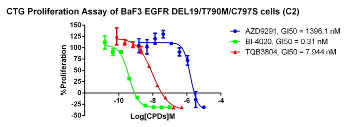 我們結(jié)合自己多年在細胞領(lǐng)域的豐富經(jīng)驗,在 Ba/F3(小鼠原B細胞)上進行改造,引入相應表達激酶基因,這些基因能作為Ba/F3的驅(qū)動基因,讓Ba/F3不再依賴IL-3而增殖,進而激酶基因成為Ba/F3增殖依賴的驅(qū)動基因,用于評估小分子藥物對激酶的靶向抑制作用。