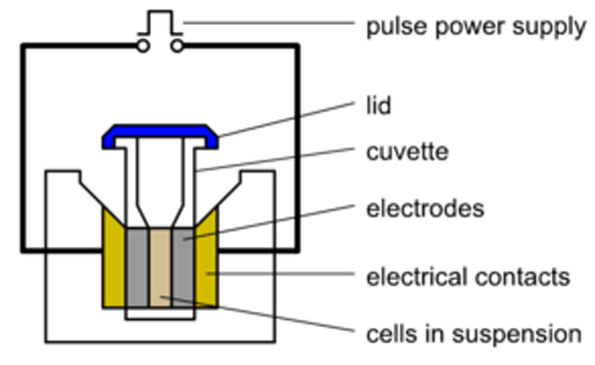 圖 1:裝有比色皿的電穿孔儀主要部件示意圖。圖片來源:Richard Wheeler