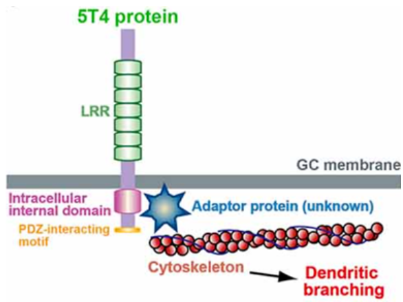 人類和小鼠的5T4蛋白的同源性可達(dá)81%。大量的證據(jù)顯示5T4與不同的生理、病理過程密切相關(guān),如細(xì)胞間連接、細(xì)胞形態(tài)及運(yùn)動、細(xì)胞黏附能力、細(xì)胞膜的完整性等等。5T4廣泛表達(dá)于胚胎發(fā)育期的各種滋養(yǎng)層細(xì)胞,但在正常成人組織中表達(dá)極少,只在幾種上皮細(xì)胞中表達(dá),但卻在很多癌癥細(xì)胞中有表達(dá),包括結(jié)腸癌、胃癌、卵巢癌、口腔癌、前列腺癌、肺癌、腎癌、子宮癌等。這一特點(diǎn)使其成為了一種有吸引力的腫瘤免疫治療新靶點(diǎn)。