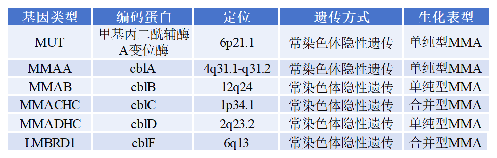 甲基丙二酸血癥(methylmalonicacidemia,MMA)又稱甲基丙二酸尿癥(Methylmalonicaciduria),是我國罕見病中最常見的常染色體隱性遺傳的有機酸代謝病。MMA由甲基丙二酰輔酶A變位酶(methylmalonylCoAmutase,MCM)或其輔酶鈷胺素(cobalamin,Cbl;也即維生素B12,VitB12)代謝缺陷所導(dǎo)致。根據(jù)患者血液總同型半胱氨酸是否增高,分為單純型MMA及MMA合并同型半胱氨酸血癥(簡稱合并型MMA)2種生化表型。合并型MMA占我國MMA患者的70%左右。目前已知與合并型MMA相關(guān)的基因有1個(MMACHC),與單純型MMA相關(guān)的基因有5個(MUT,MMAA,MMAB,MCEE,MMADHC)。還有一些基因可致不典型MMA或少見疾病并發(fā)MMA,包括HCFC1,ACSF3,ALDH6A1,TCblR, CD320,LMBRD1,ABCD4,SUCLG1,SUCLG2等。