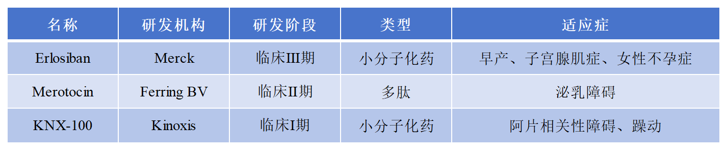 目前,針對(duì)OXT/OXTR靶點(diǎn)的藥物布局較少,藥物布局如下: